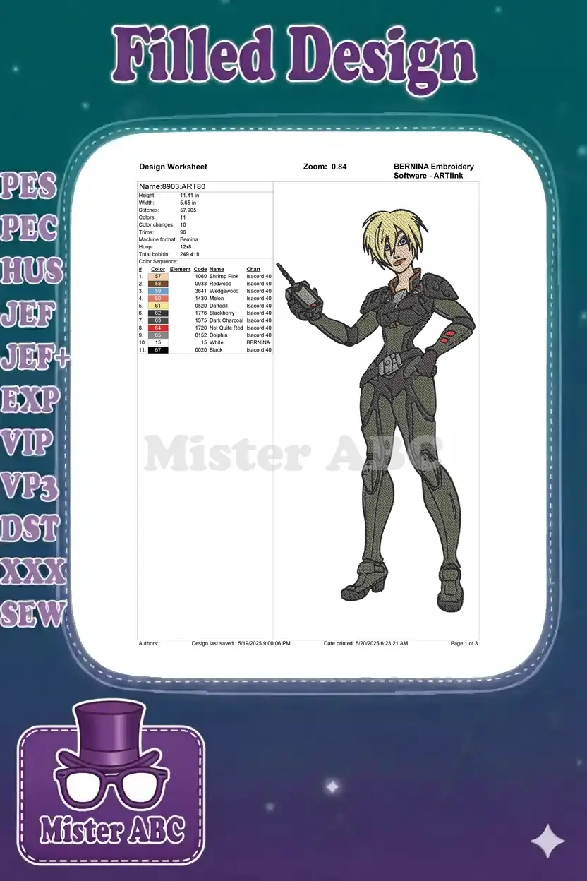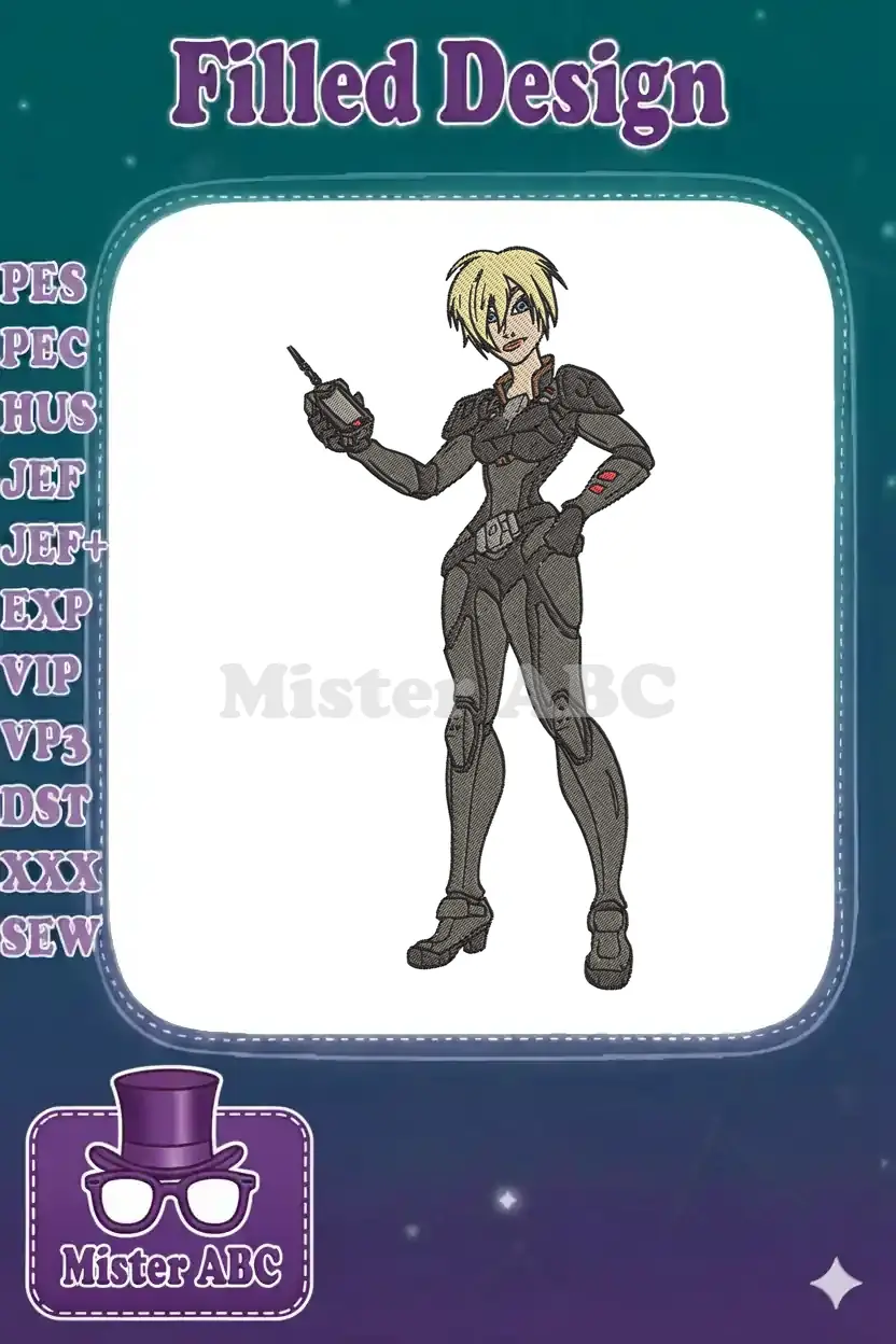 Blonde Sci-Fi Heroine in Armored Suit Embroidery Designs