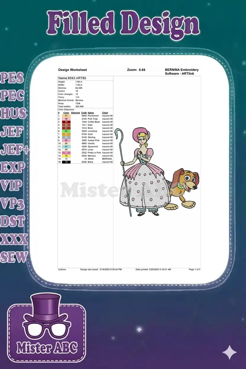 Bo Peep and Slinky Dog Toy Story character embroidery designs