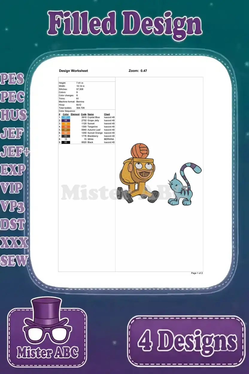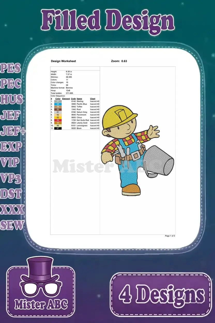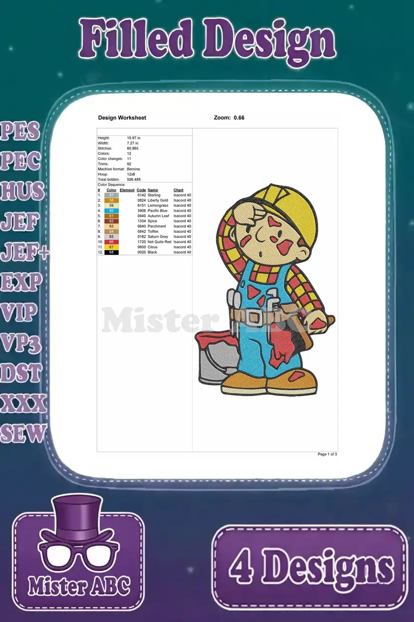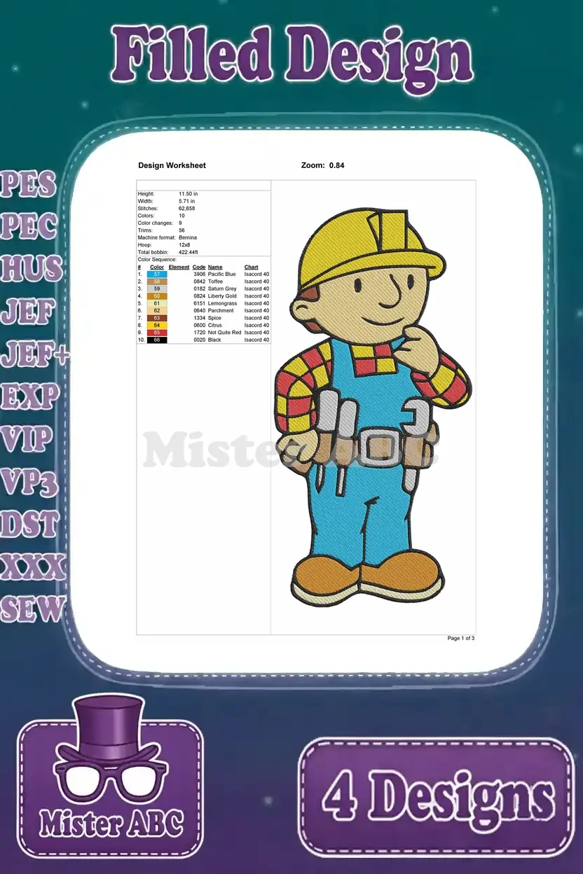 Bob The Builder Characters Scarecrow Bob Dizzy Muck And Pilchard The Cat – Filled Embroidery Design