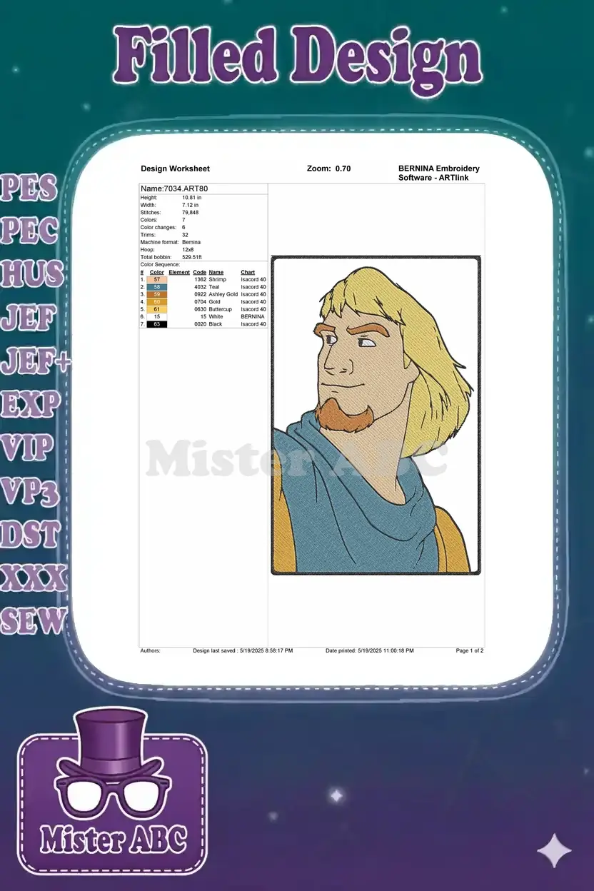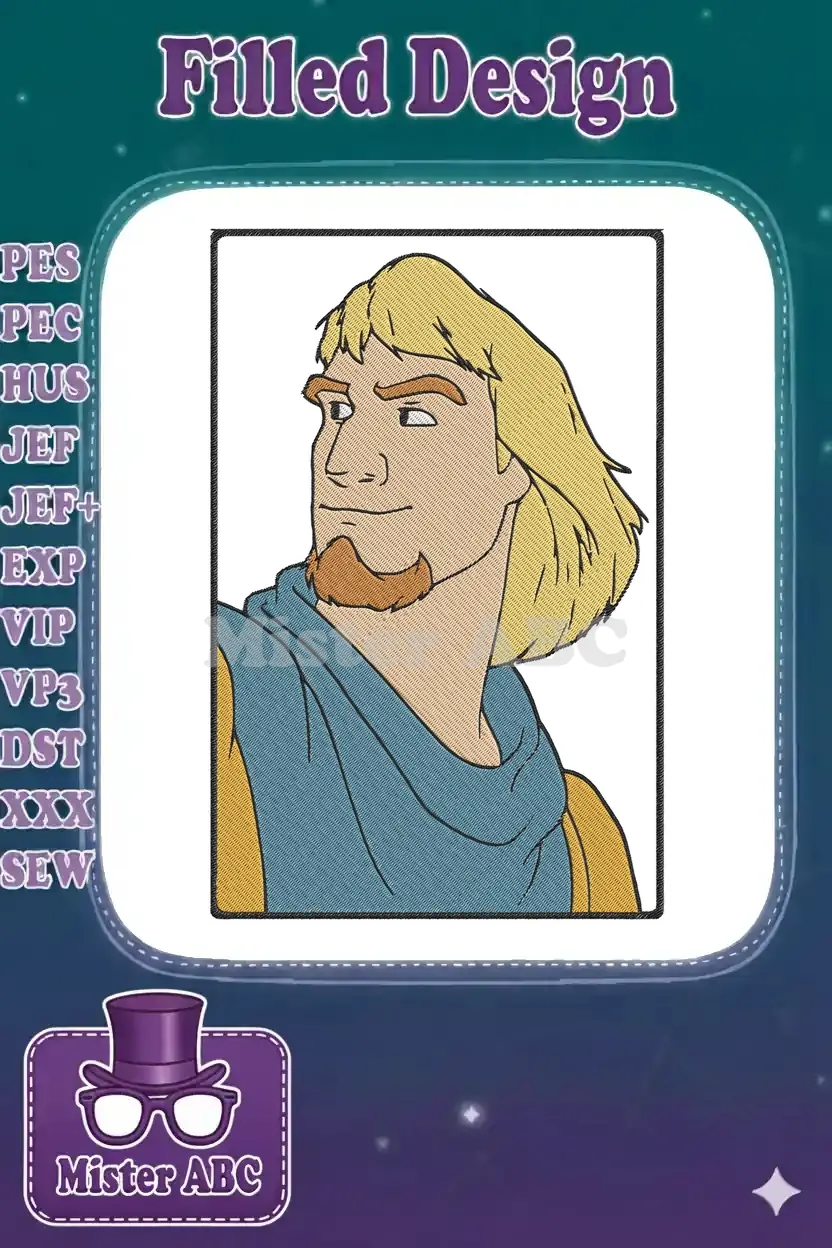 Brave Fantasy Prince Blonde Hair Goatee Blue Cloak Embroidery Designs