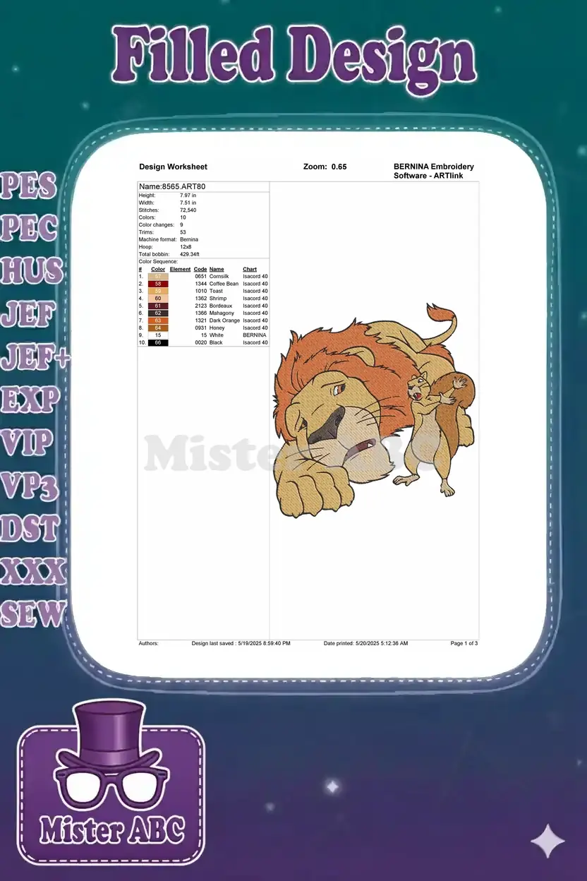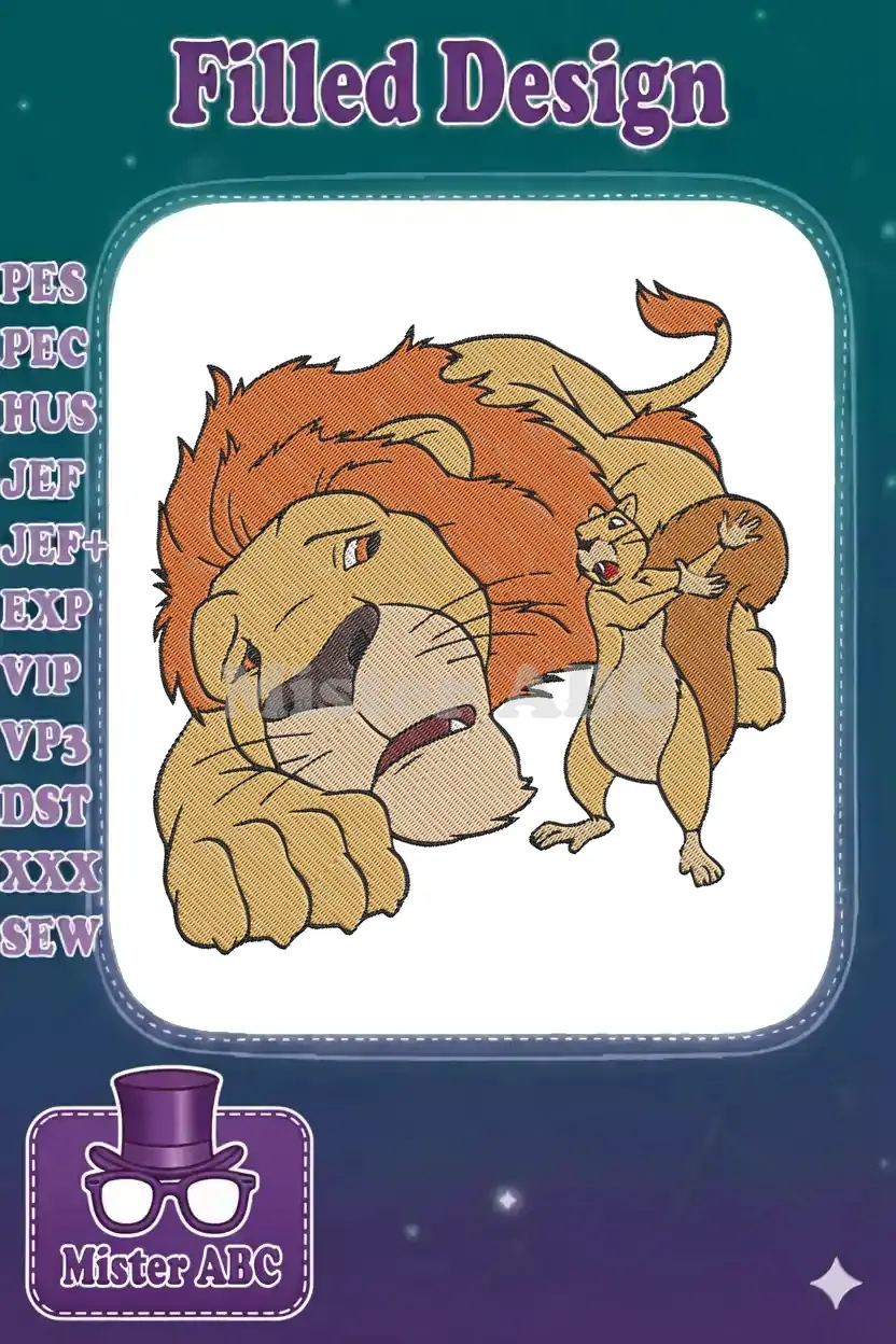 Brave Squirrel Confronting Grumpy Lion Cartoon Embroidery Designs