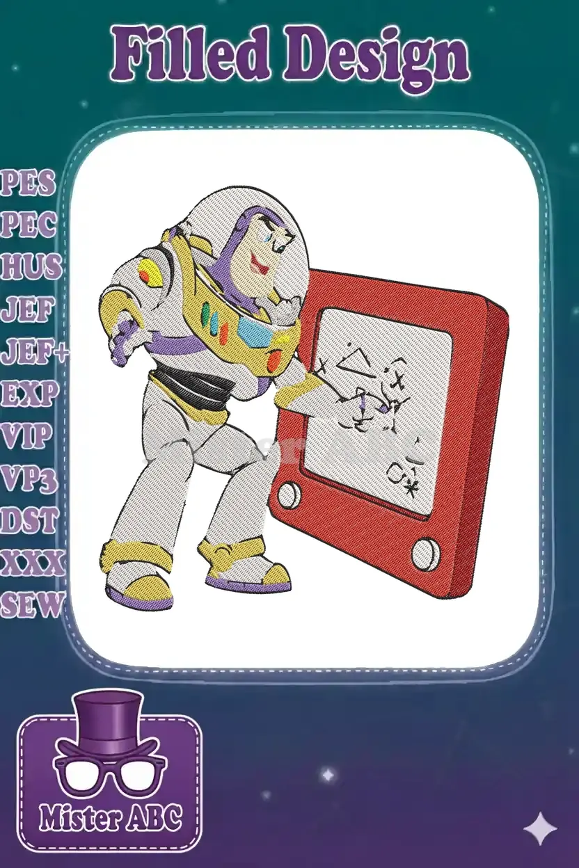 Buzz Lightyear drawing on Etch-A-Sketch embroidery designs