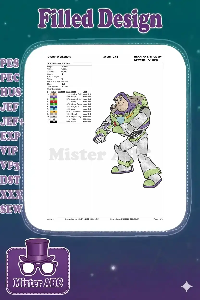 Buzz Lightyear Space Ranger Toy Story character embroidery designs