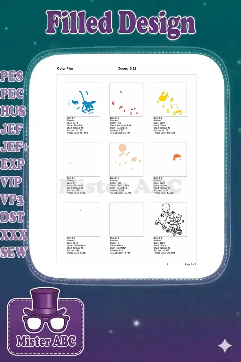 Caillou Pushing Rosie in Stroller Happy Cartoon Embroidery Designs – Instant Download