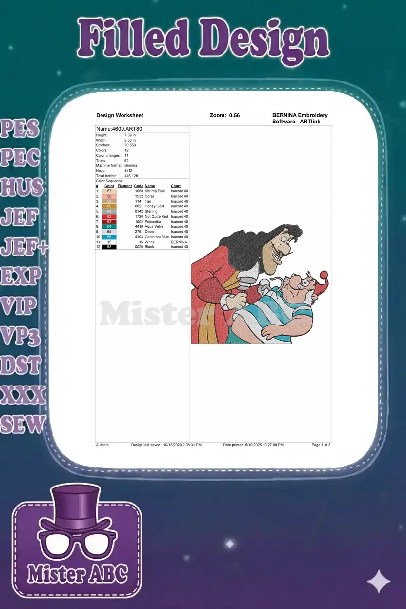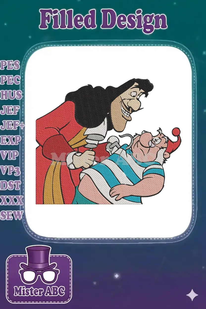 Captain Hook and Mr Smee classic cartoon embroidery designs