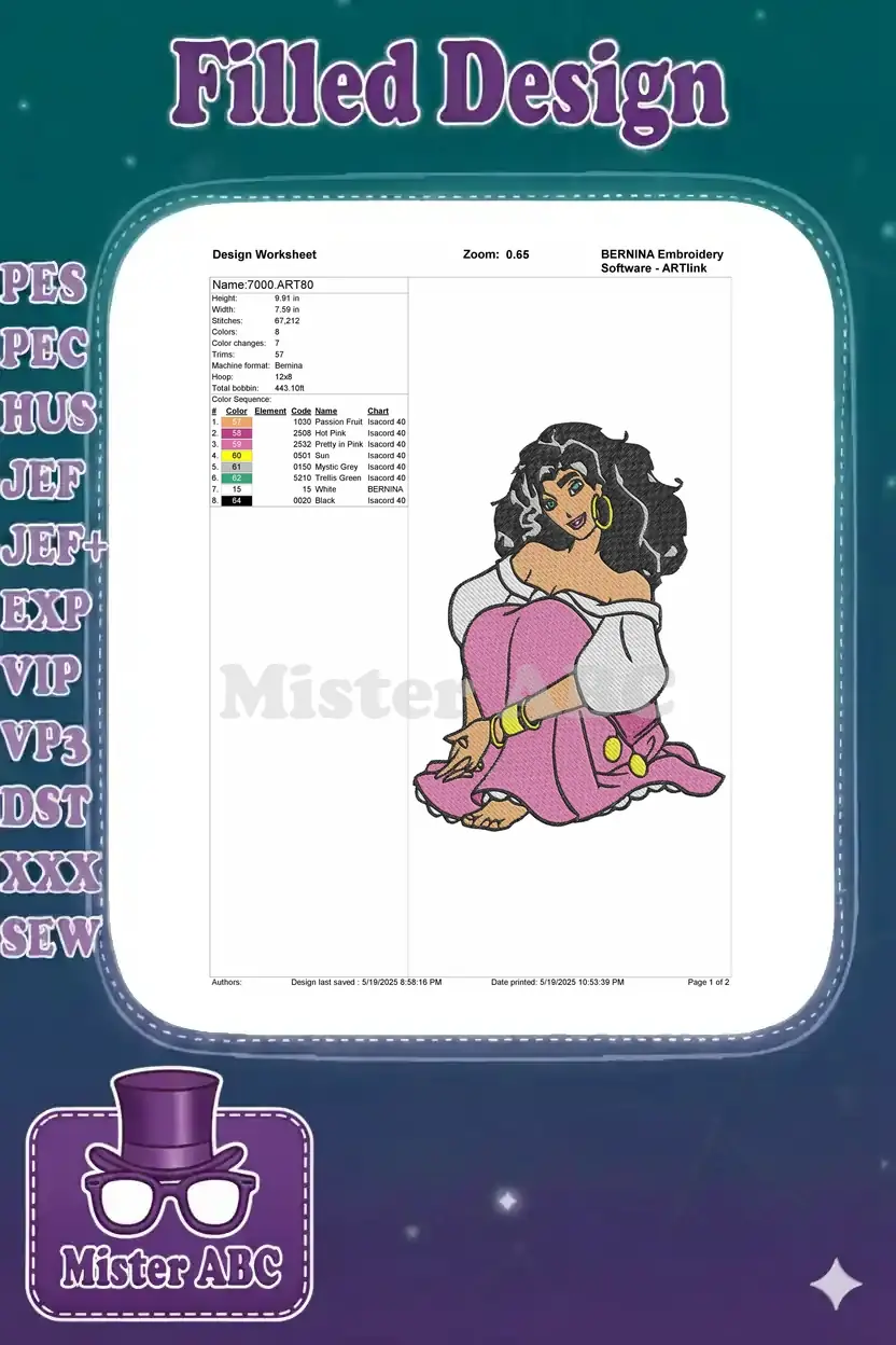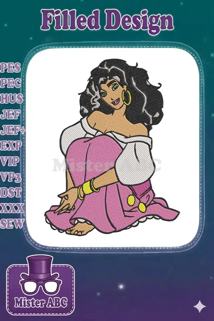 Captivating Esmeralda Gypsy Character with Pink Skirt Embroidery Designs