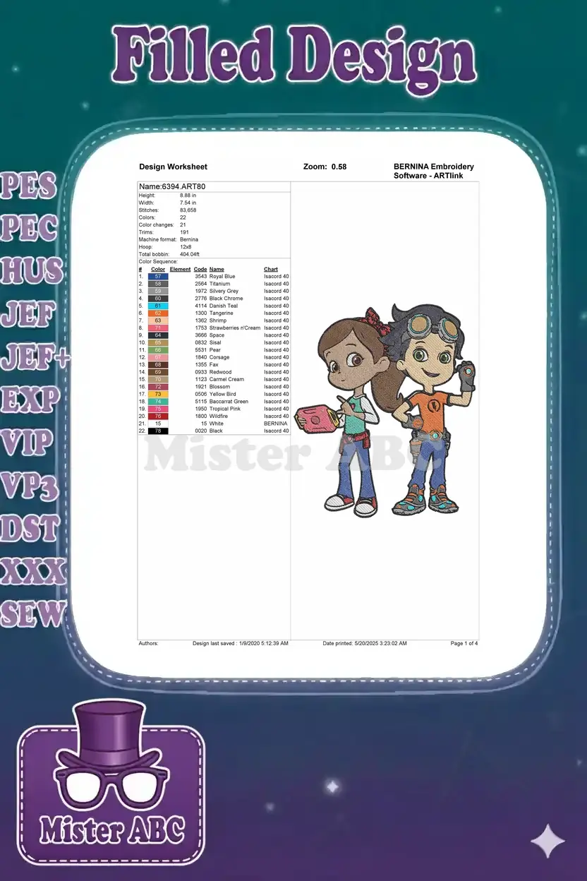 Cartoon adventurer kids embroidery designs with goggles and tech