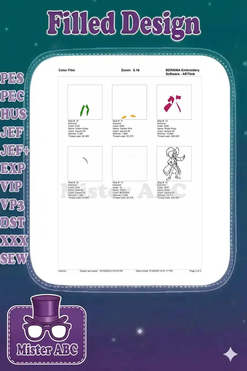 | Stitches | Colors | Thread Changes |