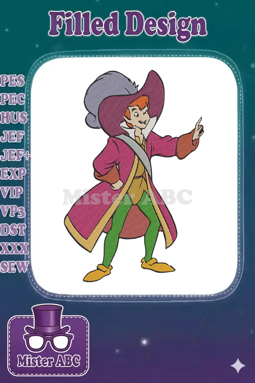 Cartoon Boy Adventurer in Pink Coat and Purple Hat Embroidery Designs