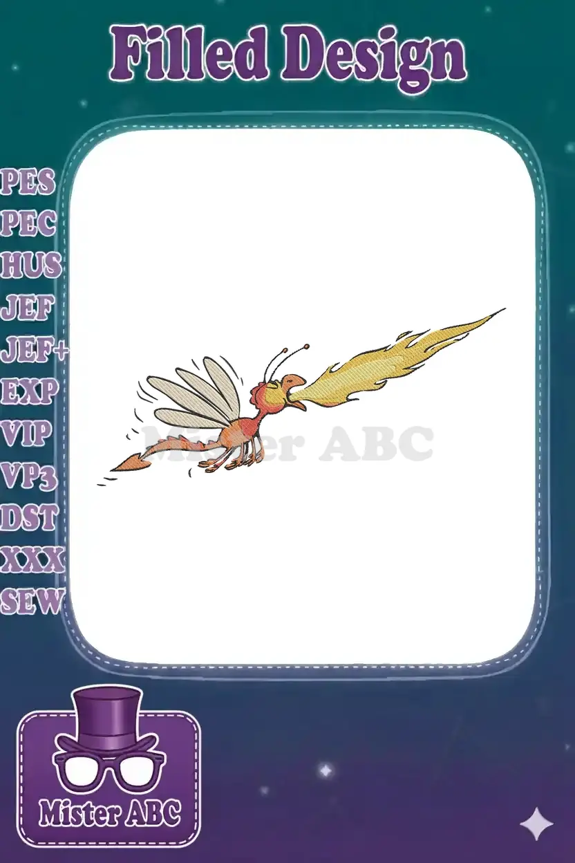 Cartoon fire-breathing dragon bug embroidery designs for fantasy projects