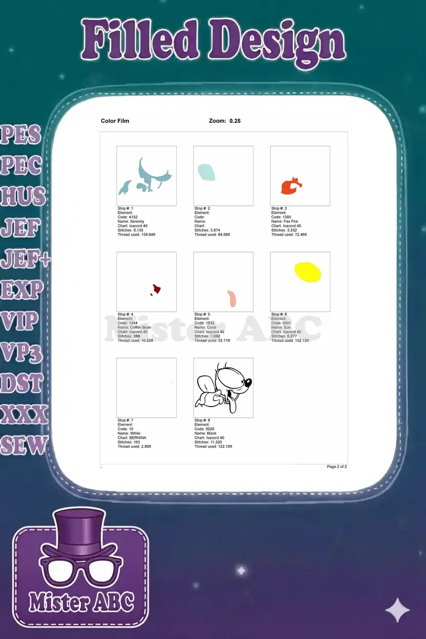 | Stitches | Colors | Thread Changes |