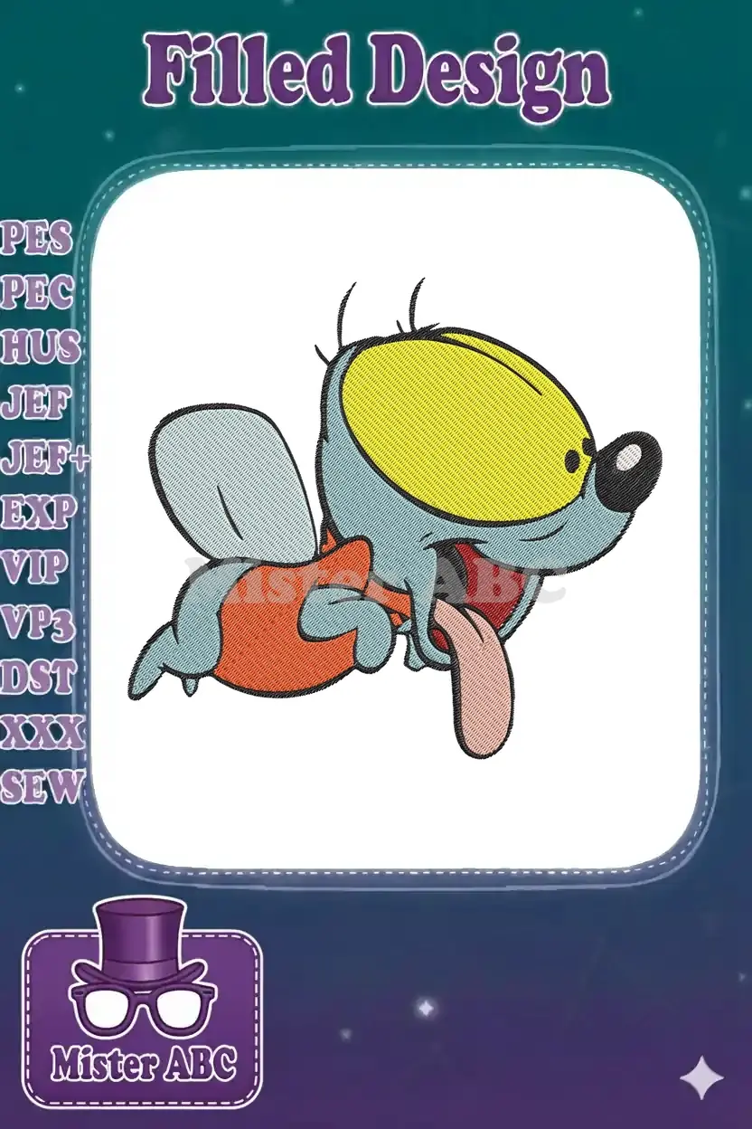 Cartoon flying insect happy bug embroidery designs