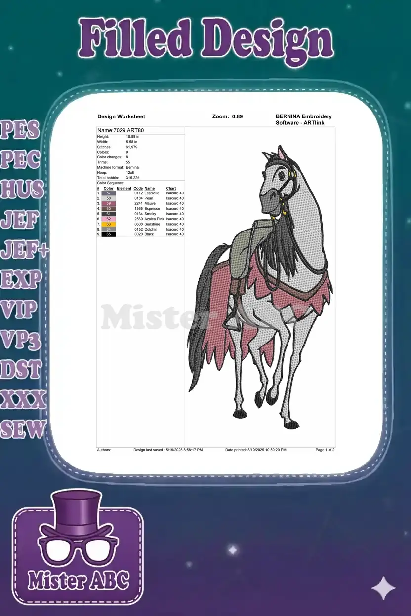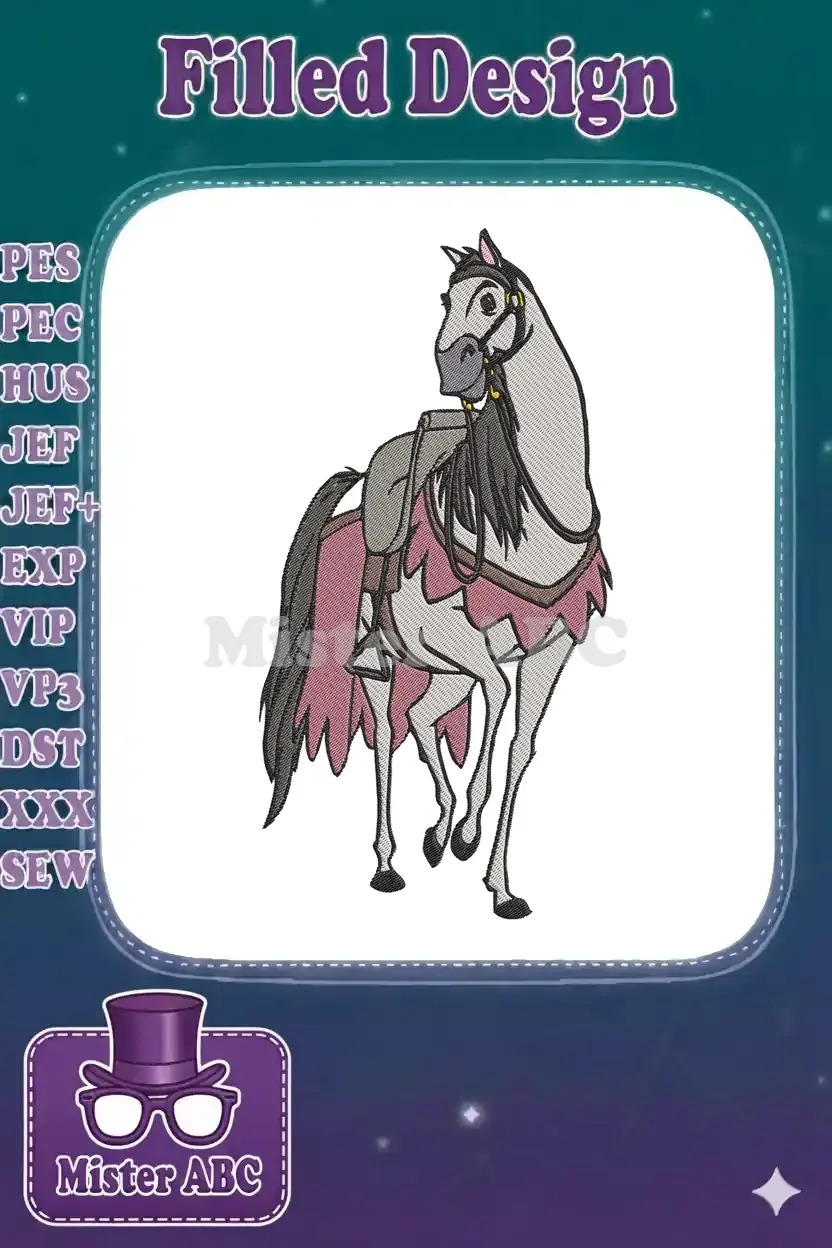 Cartoon Grey Horse with Pink Saddle Blanket Machine Embroidery Designs
