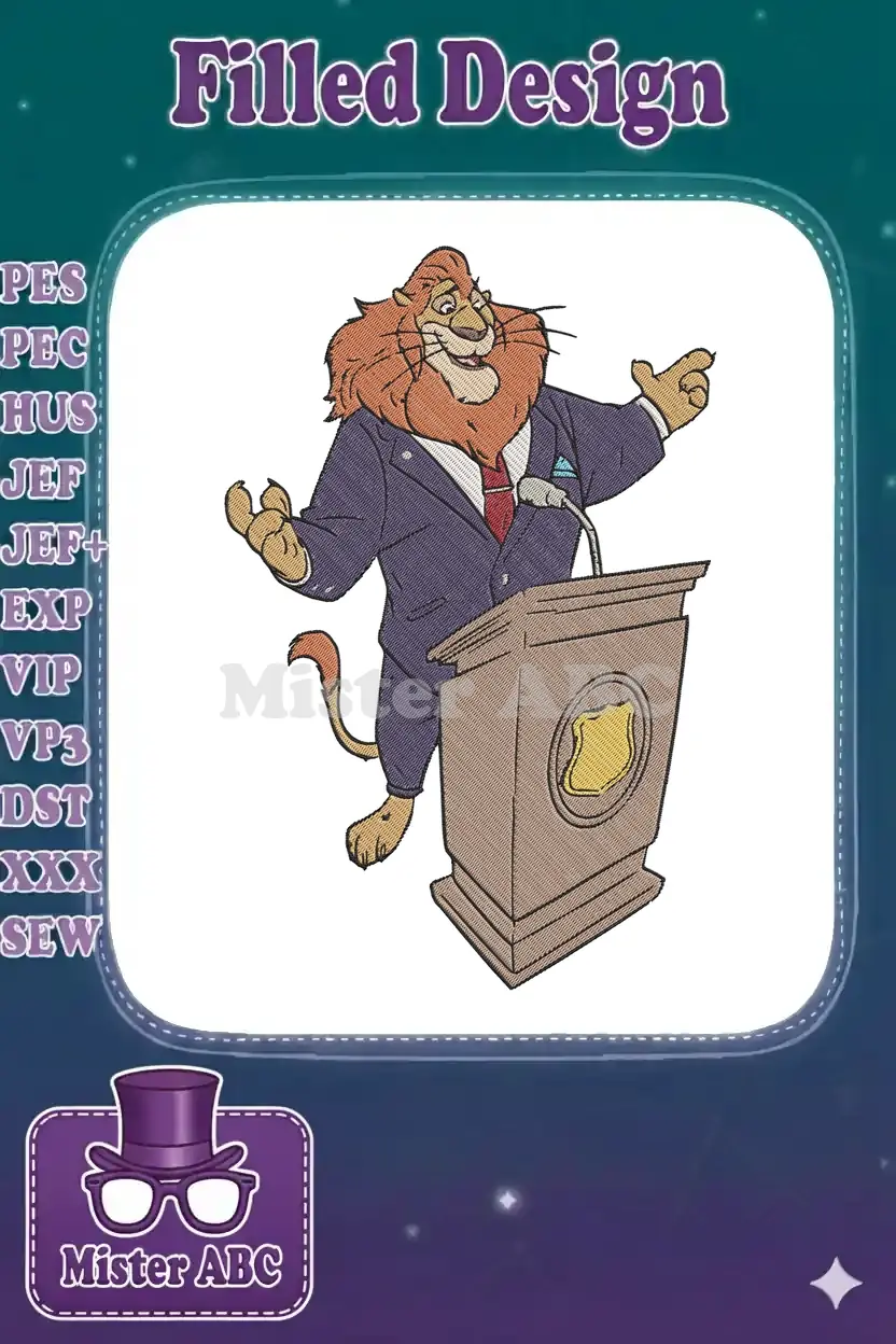 Cartoon lion in suit speaking at podium embroidery designs - Instant Download Cartoon lion in suit speaking at podium embroidery designs – Instant Download