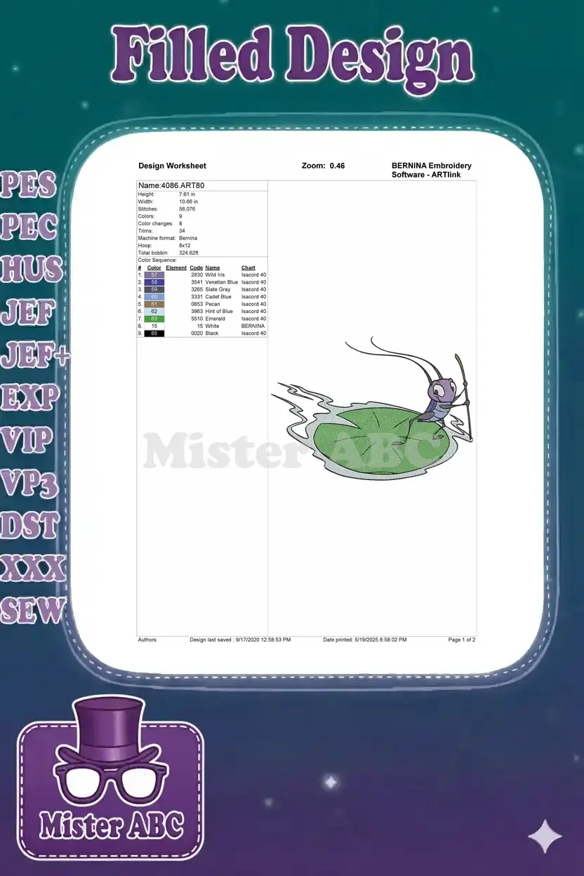 Charming Cricket on Green Lily Pad Water Adventure Embroidery Designs
