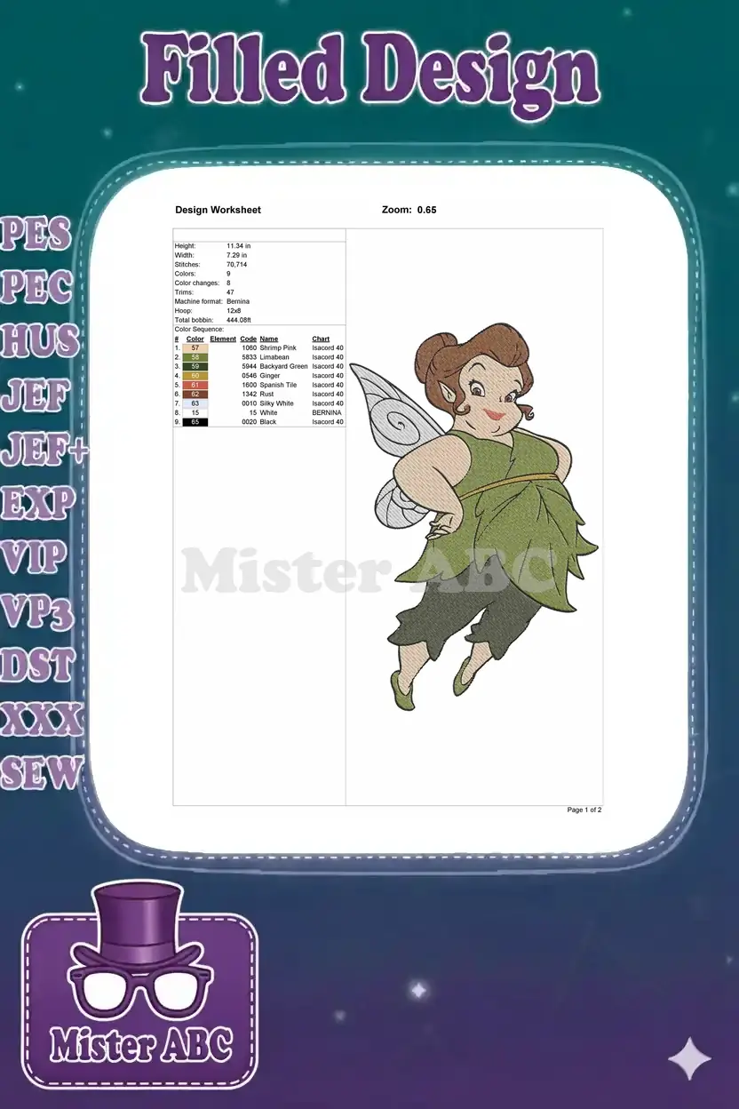 Charming plump fairy with leaf dress and wings embroidery designs