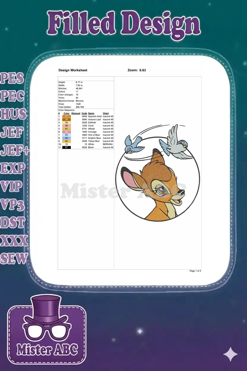 | Stitches | Colors | Thread Changes |