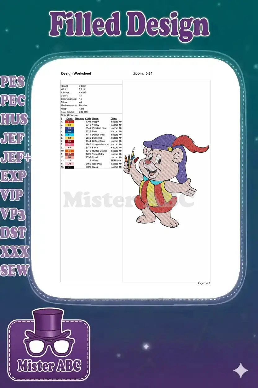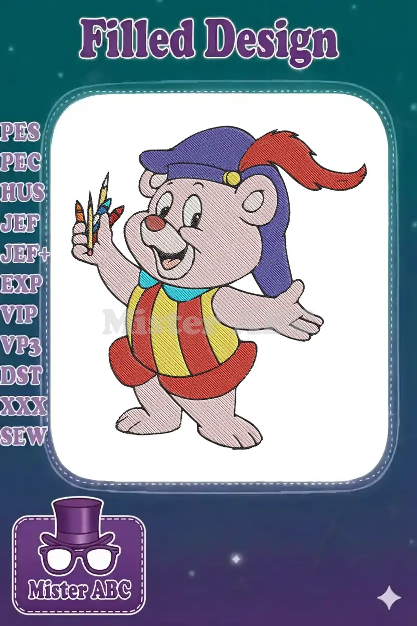 A charming Zummi Gummi embroidery design, perfect for fans of classic animated bears and creative projects!
