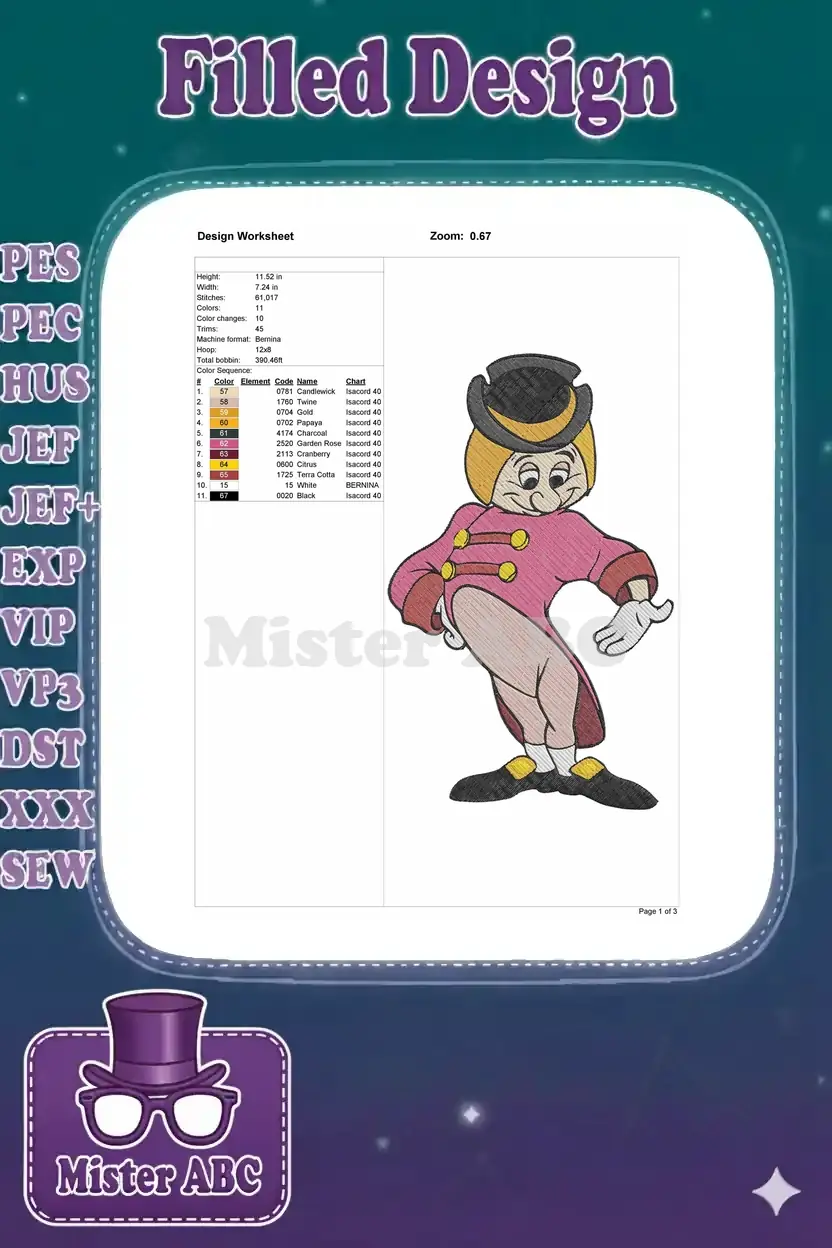 Cheerful Cartoon Ringmaster in Pink Jacket Embroidery Designs
