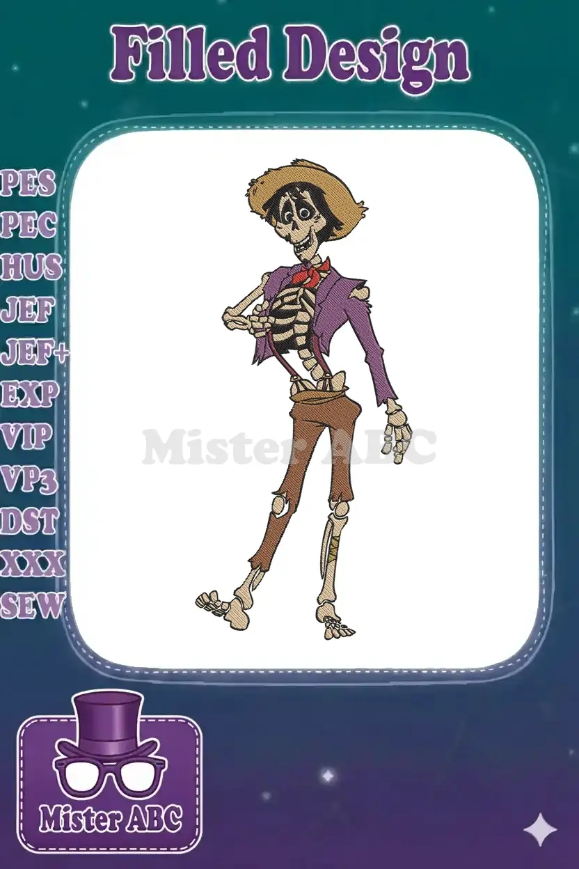 Cheerful Cartoon Skeleton Hector from Coco Movie Embroidery Designs – Instant Download