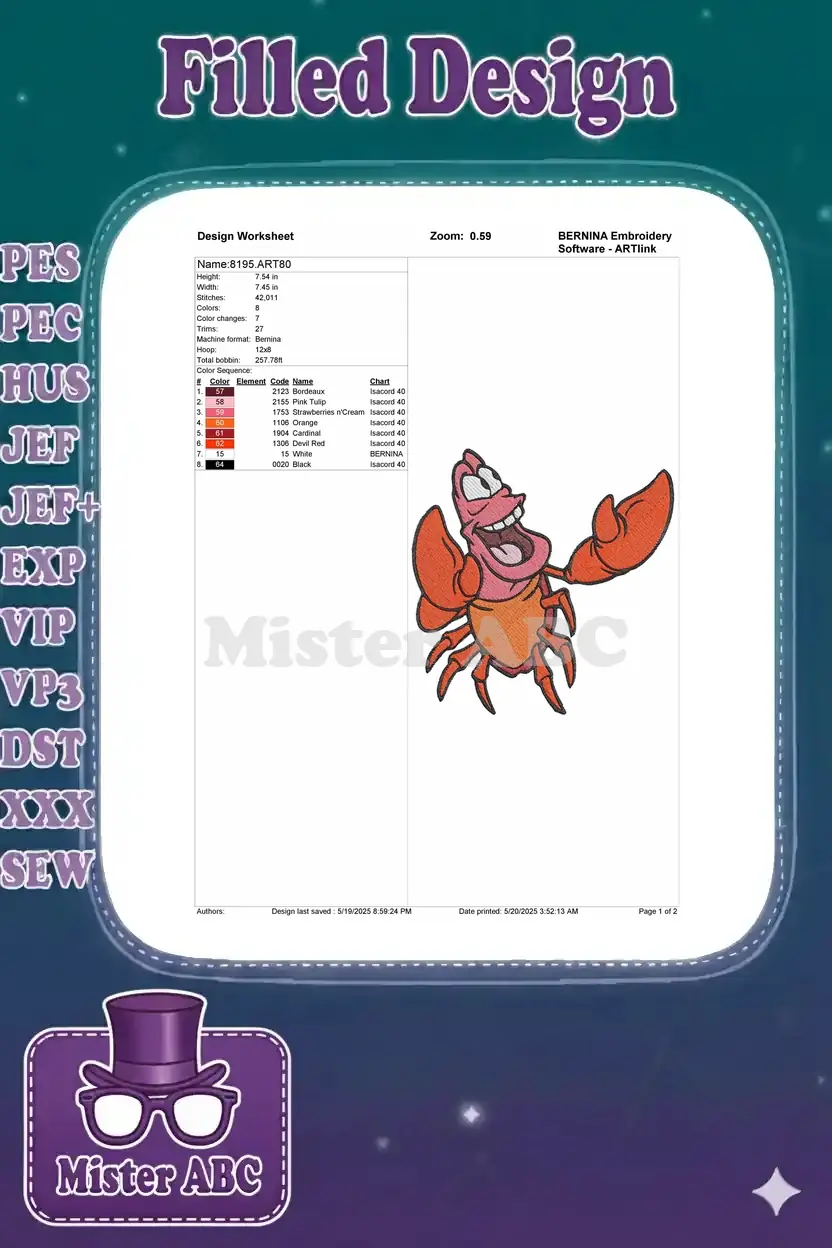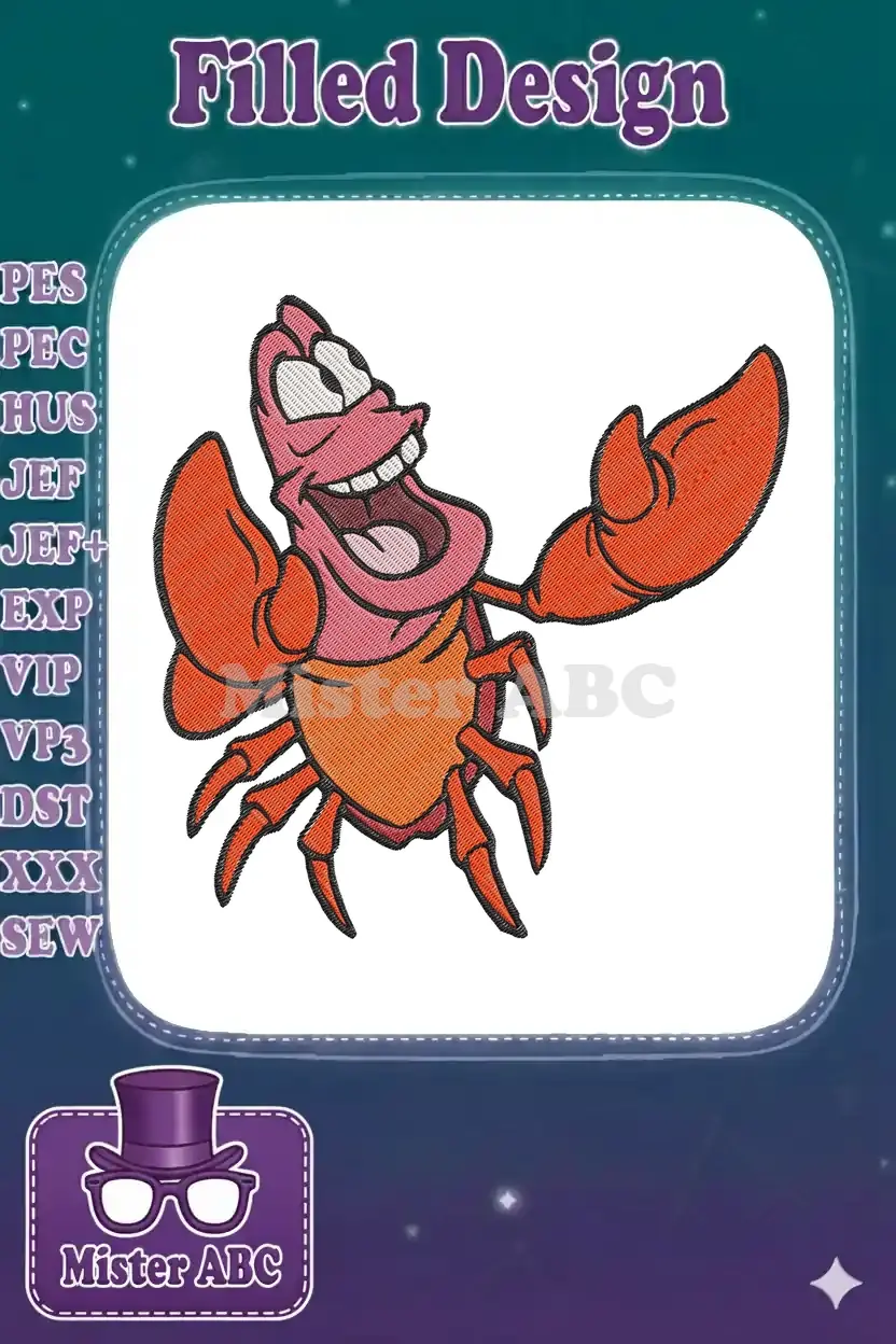 Cheerful Red Crab Cartoon Marine Life Embroidery Designs for Projects