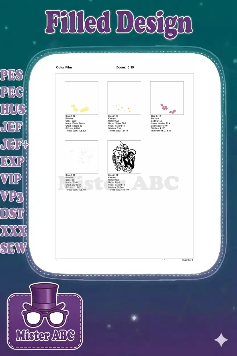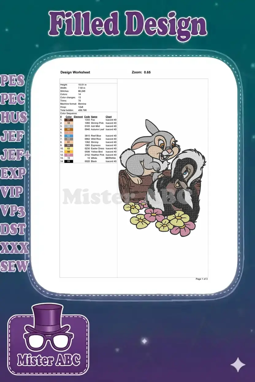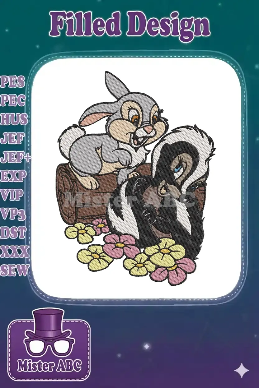 Cheerful Thumper and Flower woodland friends embroidery designs with flowers