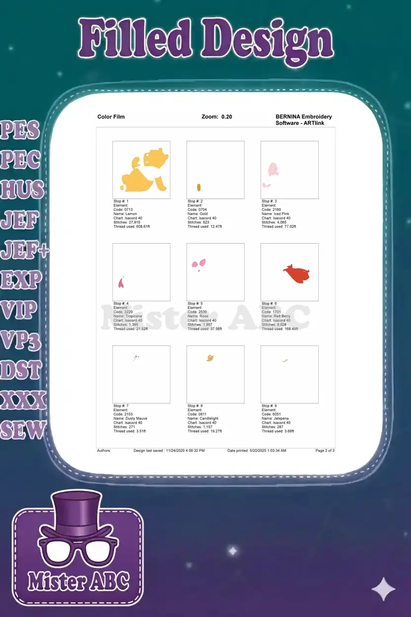 | Stitches | Colors | Thread Changes |