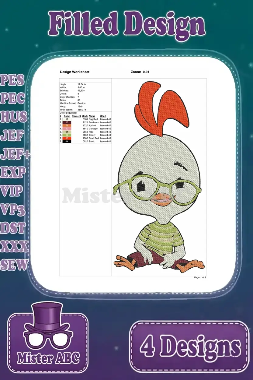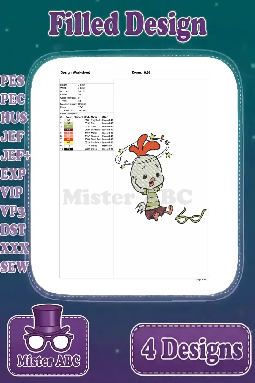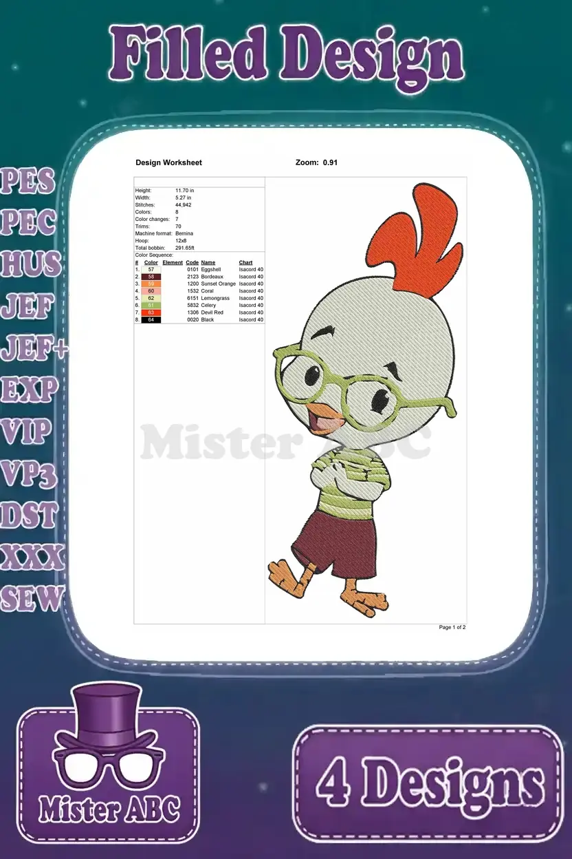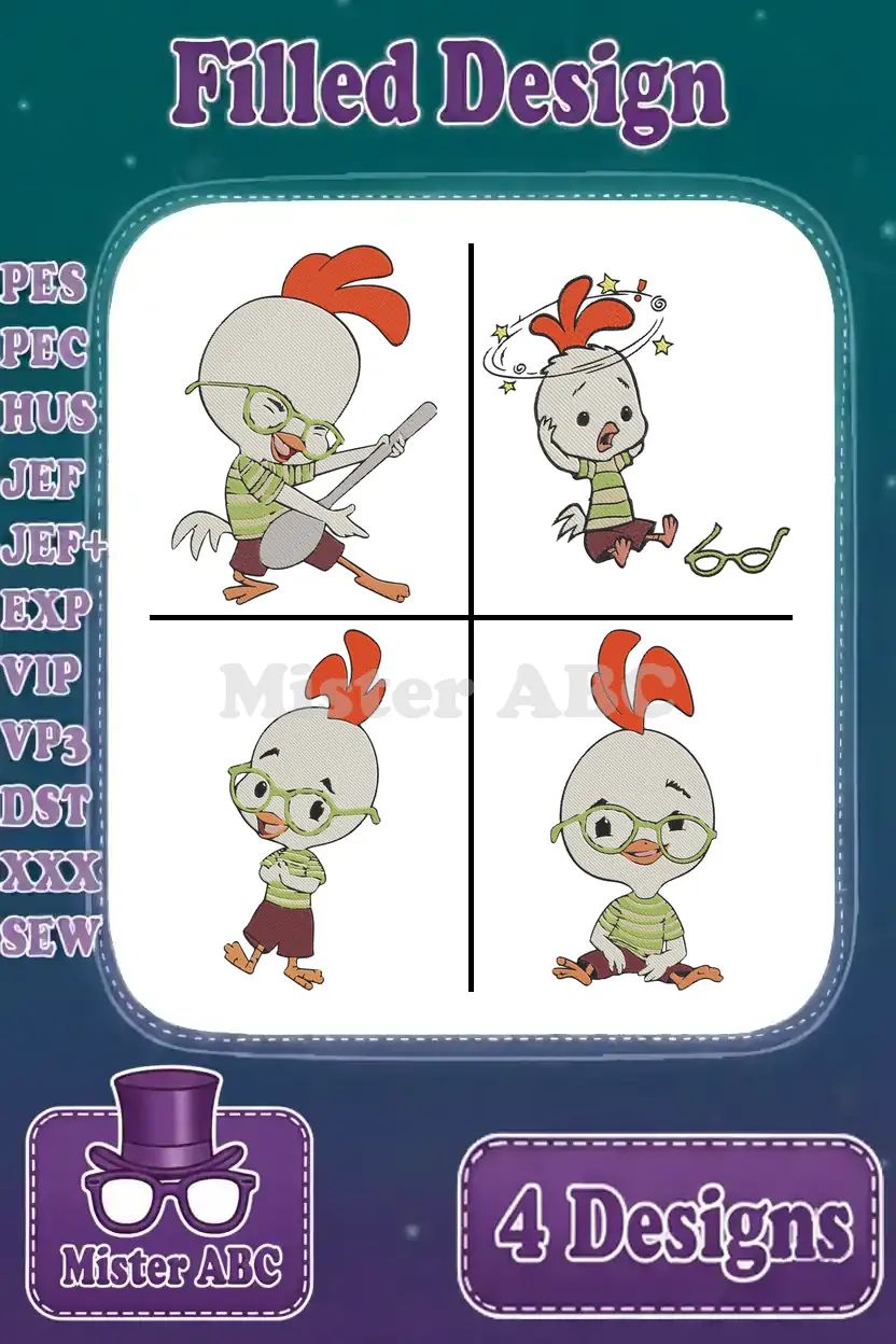 Chicken Little Character Dynamic Poses Surprised Expressions And Action Shots – Filled Embroidery Design