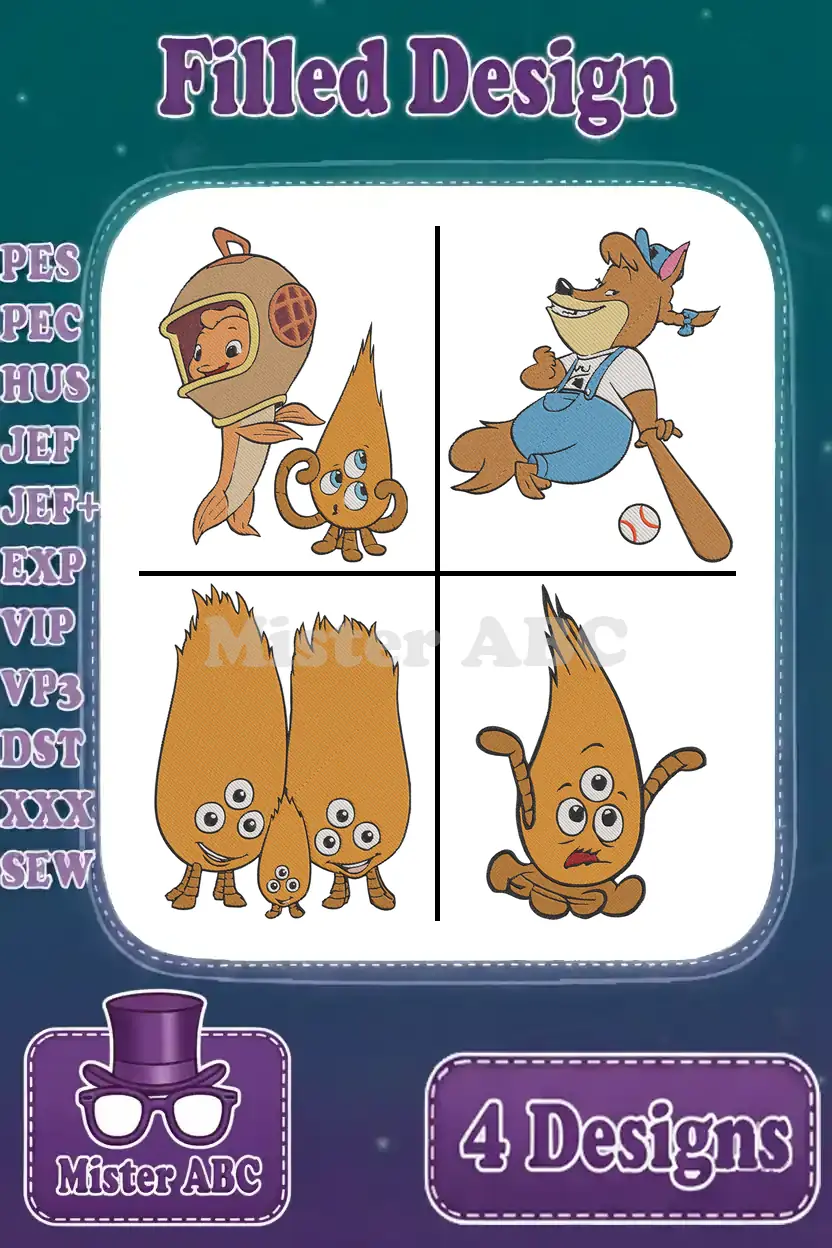 Chicken Little Fish Out Of Water Kirby Alien Child And Melvin Alien Parent – Filled Embroidery Design