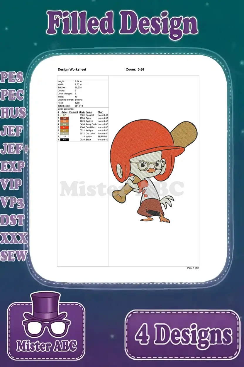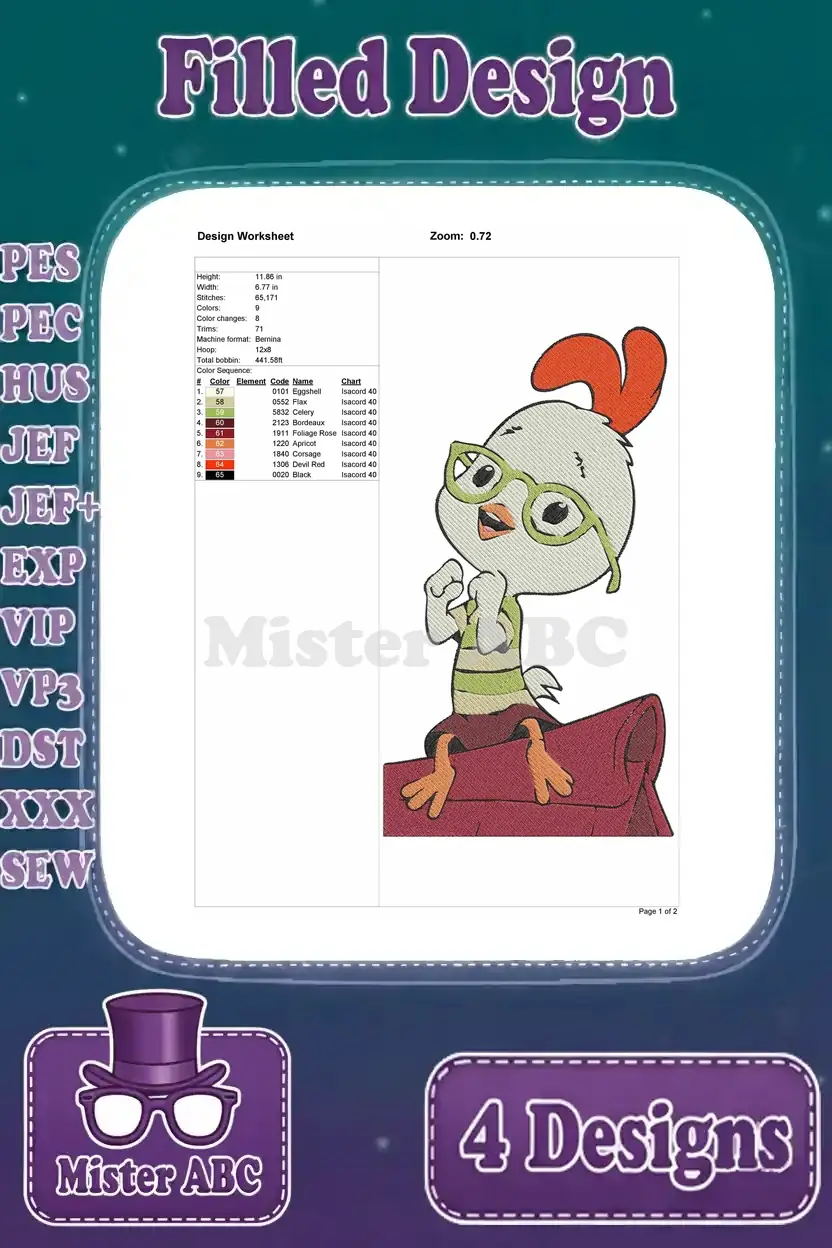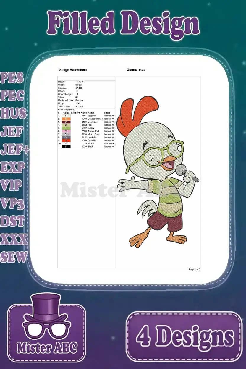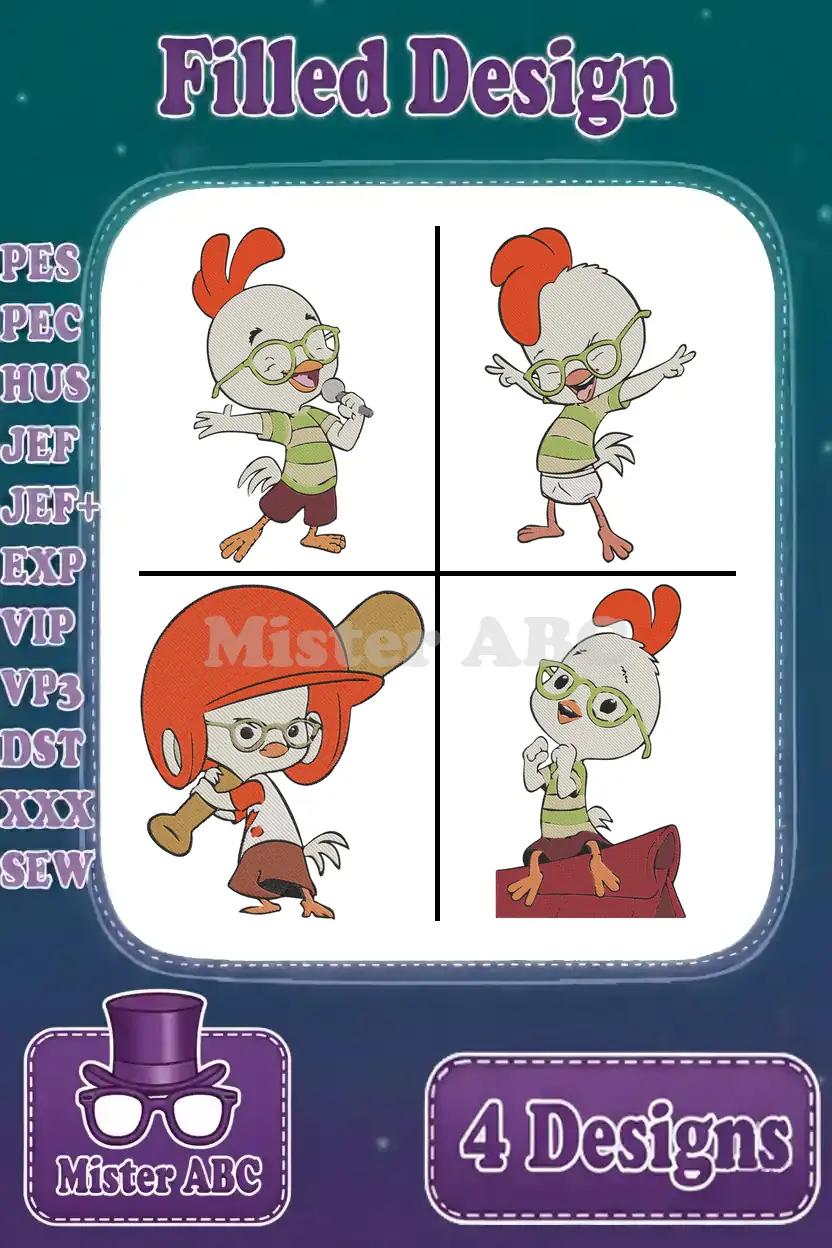 Chicken Little Main Character In Various Action Poses Including Baseball Hero – Filled Embroidery Design