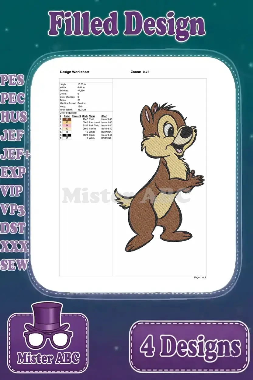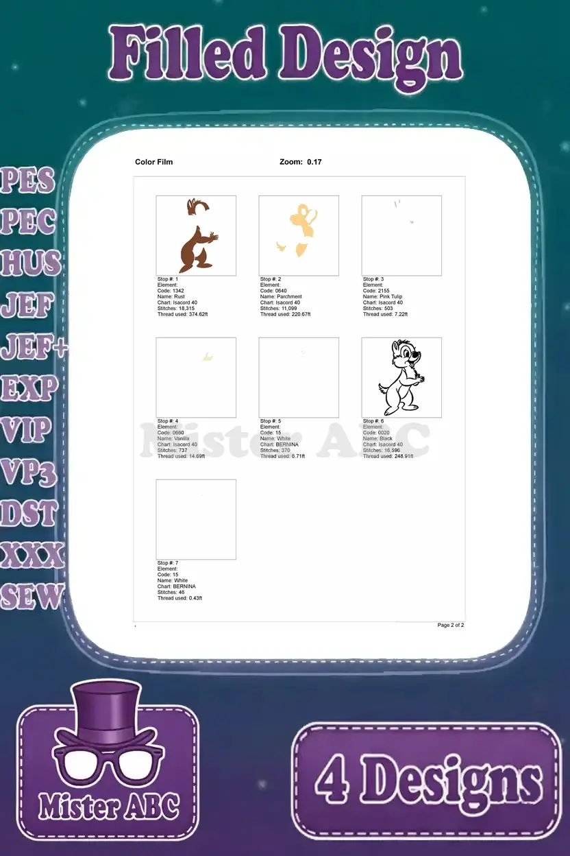 Chip And Dale Classic Style Chipmunks Playful Poses With Acorns Collection – Filled Embroidery Design