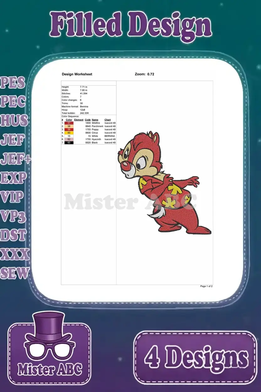 Chip And Dale Rescue Rangers Dale Hawaiian Shirt Plain Chip Standing Poses – Filled Embroidery Design