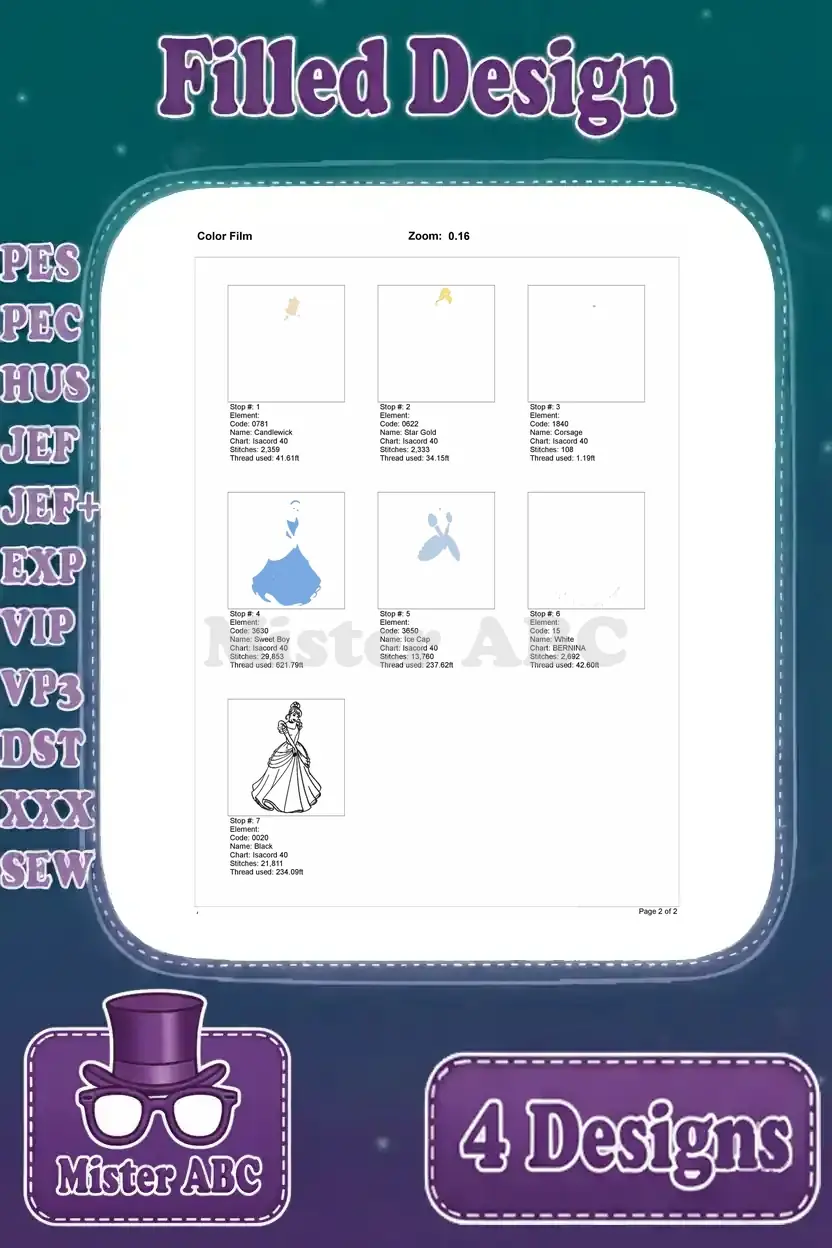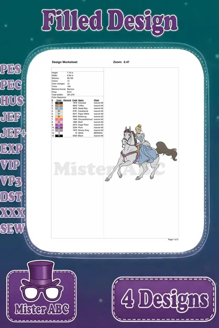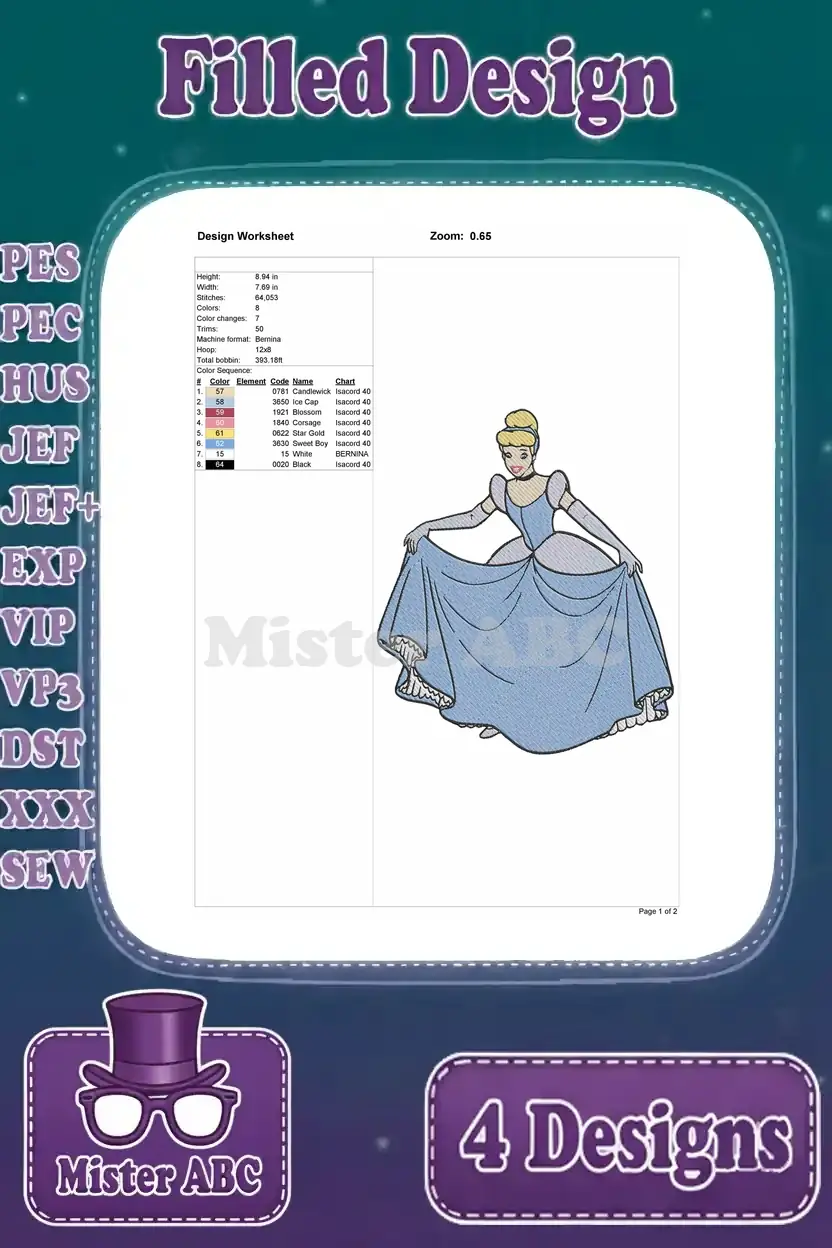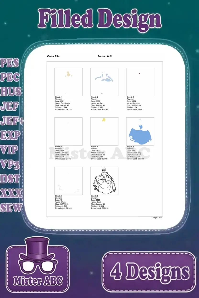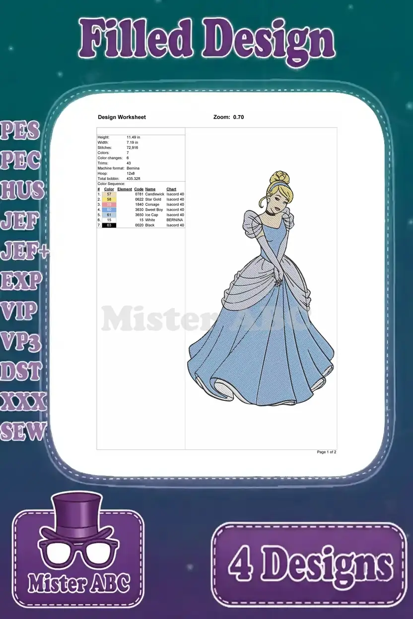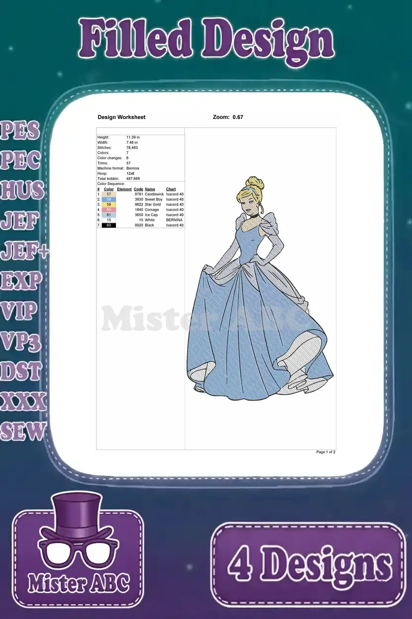 Unleash the magic with this exquisite bundle of four Cinderella filled machine embroidery designs, perfect for enchanting projects.