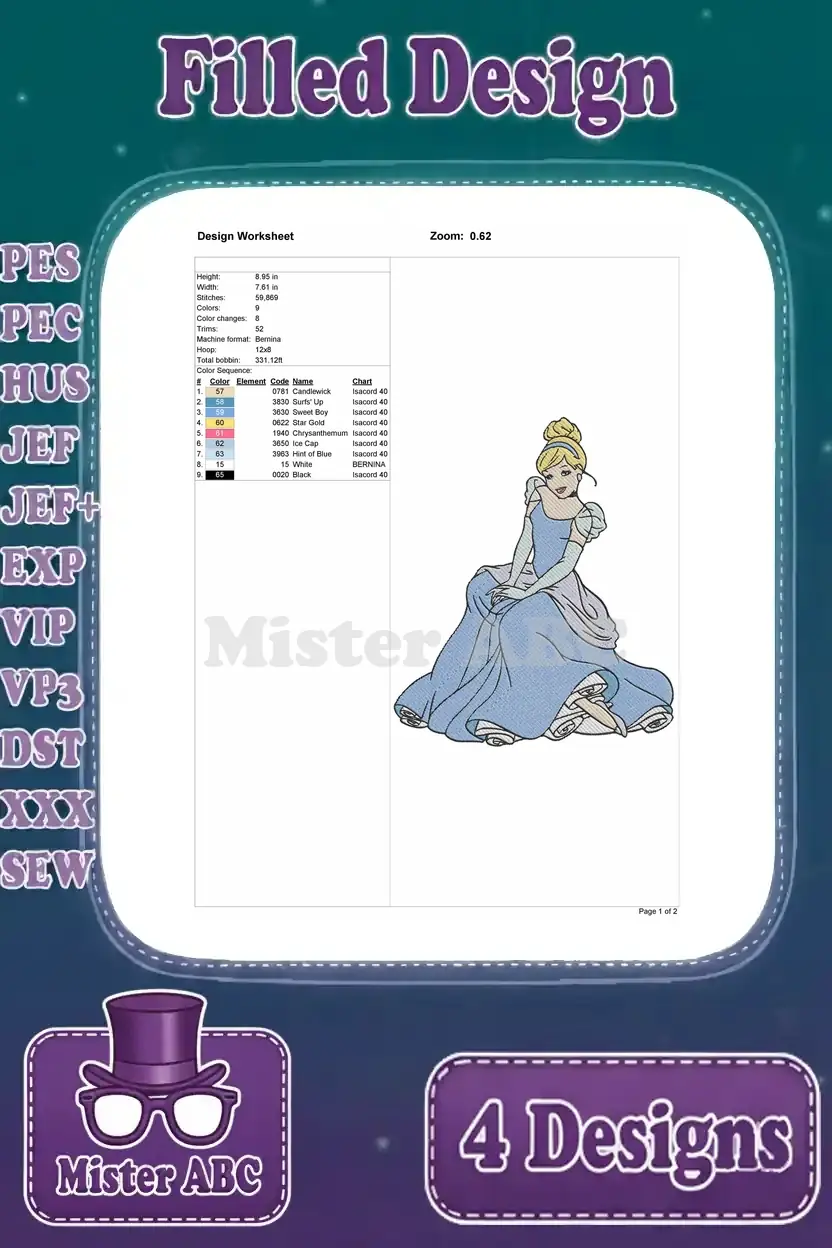 Transform your projects with this enchanting 4-design Cinderella embroidery bundle, perfect for fairytale crafts and gifts!