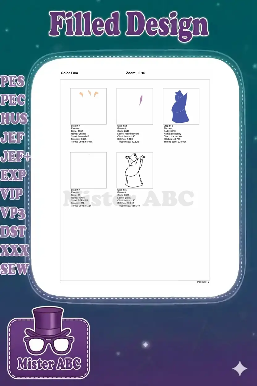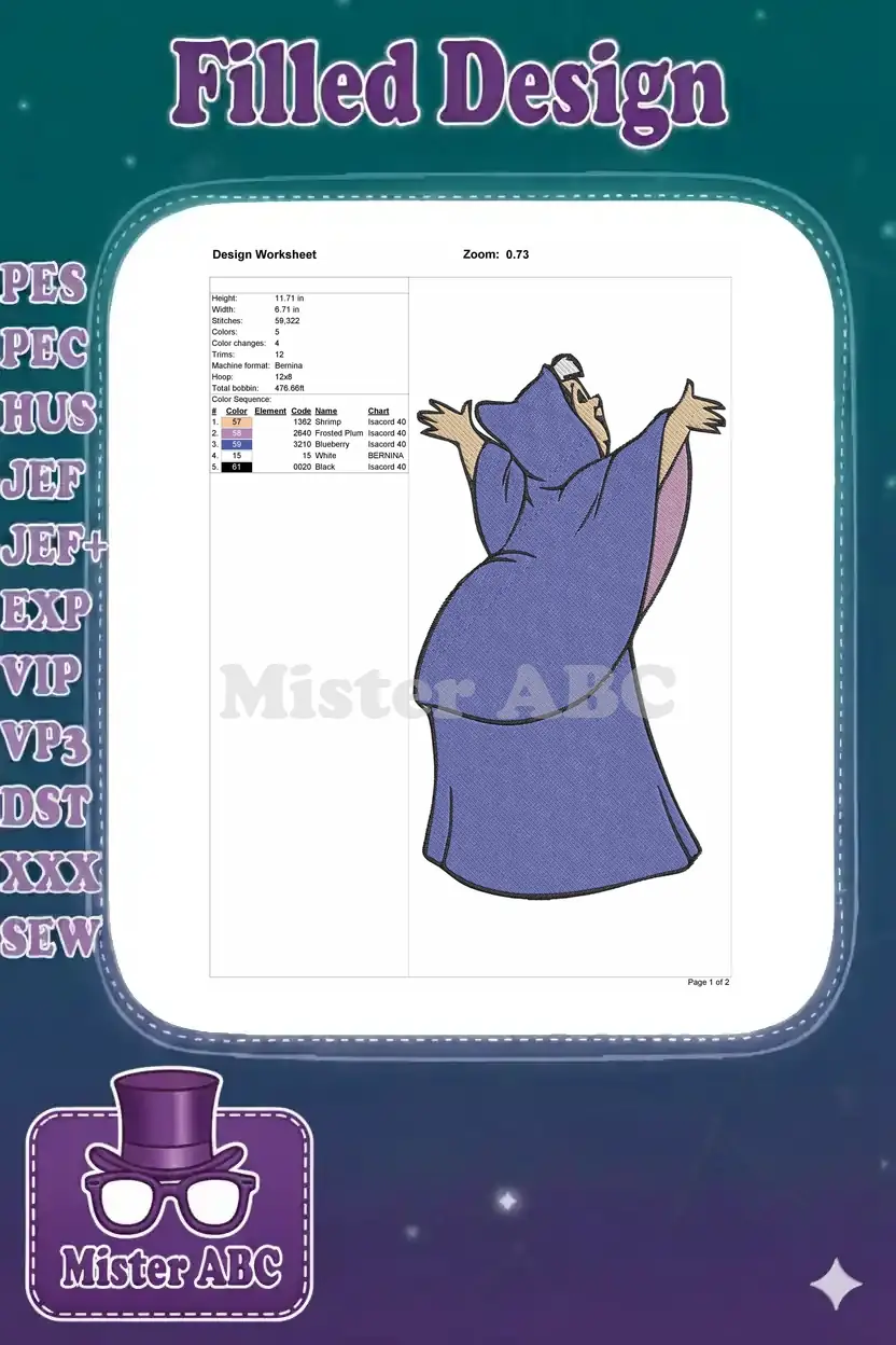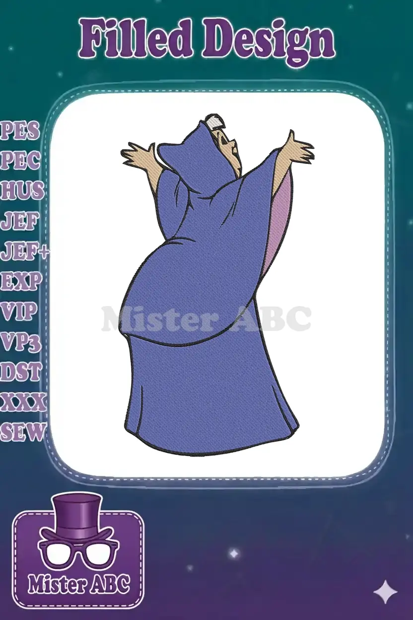 Cinderella Fairy Godmother magical blue cloak embroidery designs