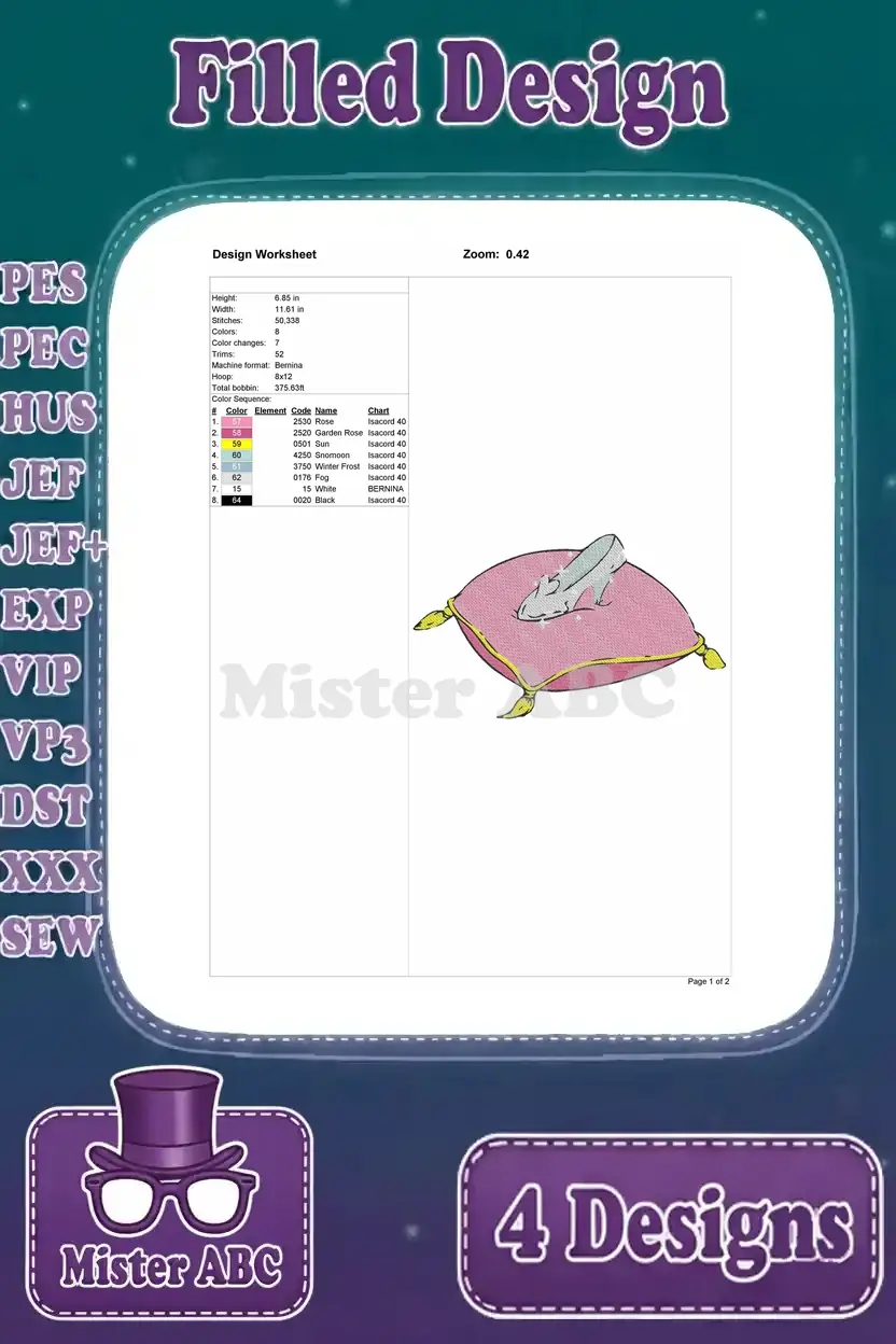 Cinderella Magical Items Pumpkin Carriage Glass Slipper On Pillow And Slipper – Filled Embroidery Design