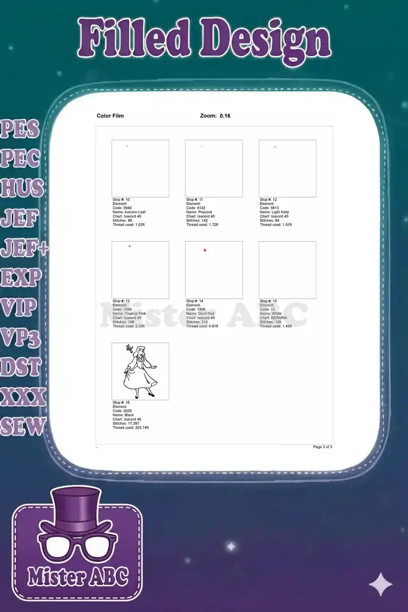 | Stitches | Colors | Thread Changes |