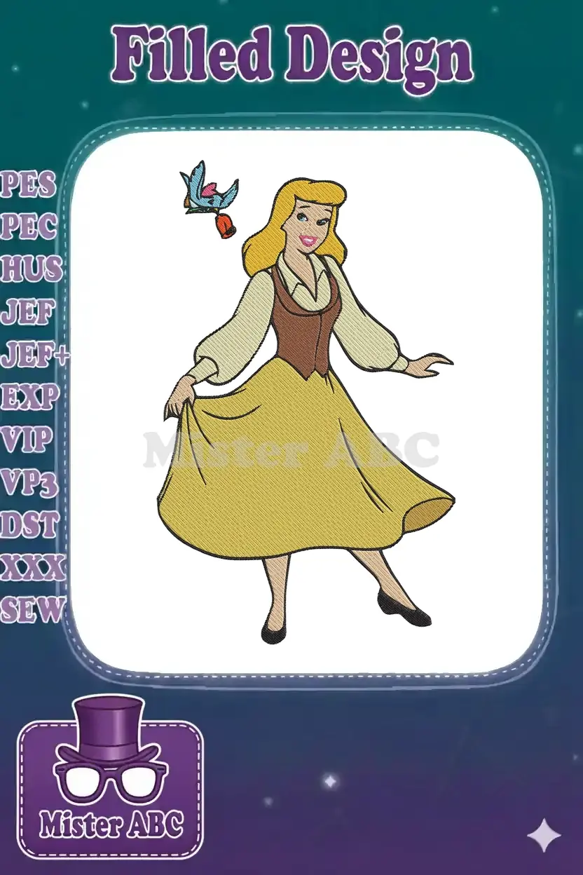 Cinderella Peasant Dress with Blue Bird Embroidery Designs