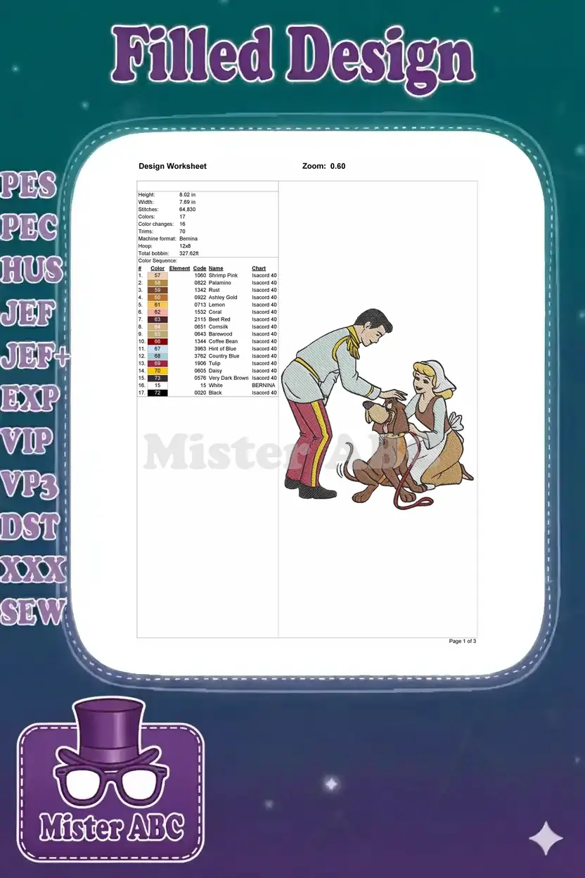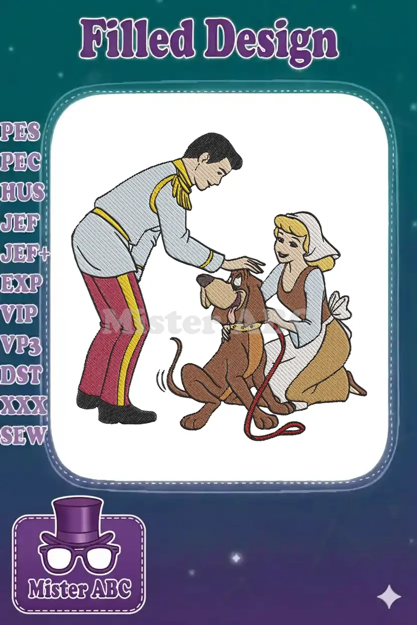 Cinderella Prince Charming petting Pluto dog animated embroidery designs