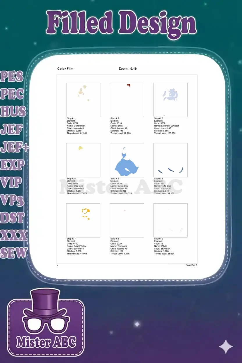 | Stitches | Colors | Thread Changes |