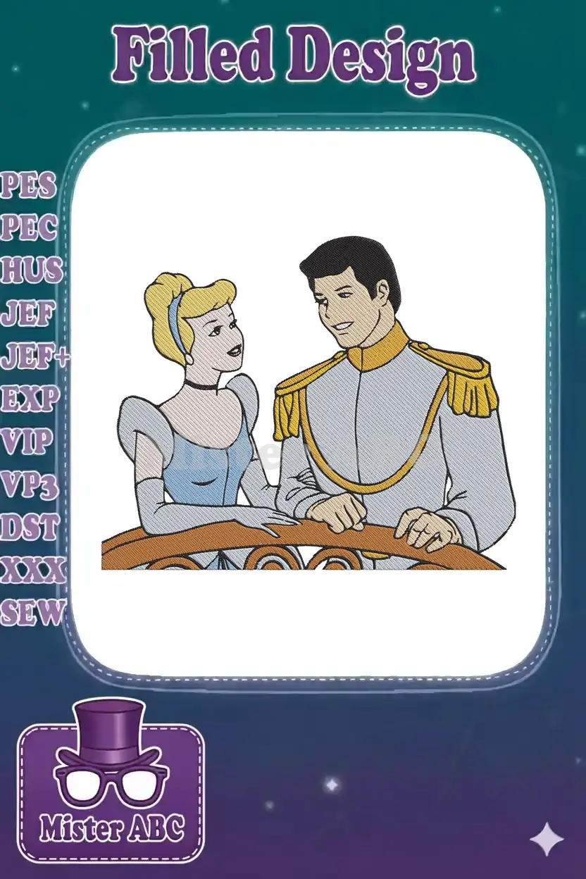 Cinderella and Prince Charming Romantic Fairy Tale Embroidery Designs