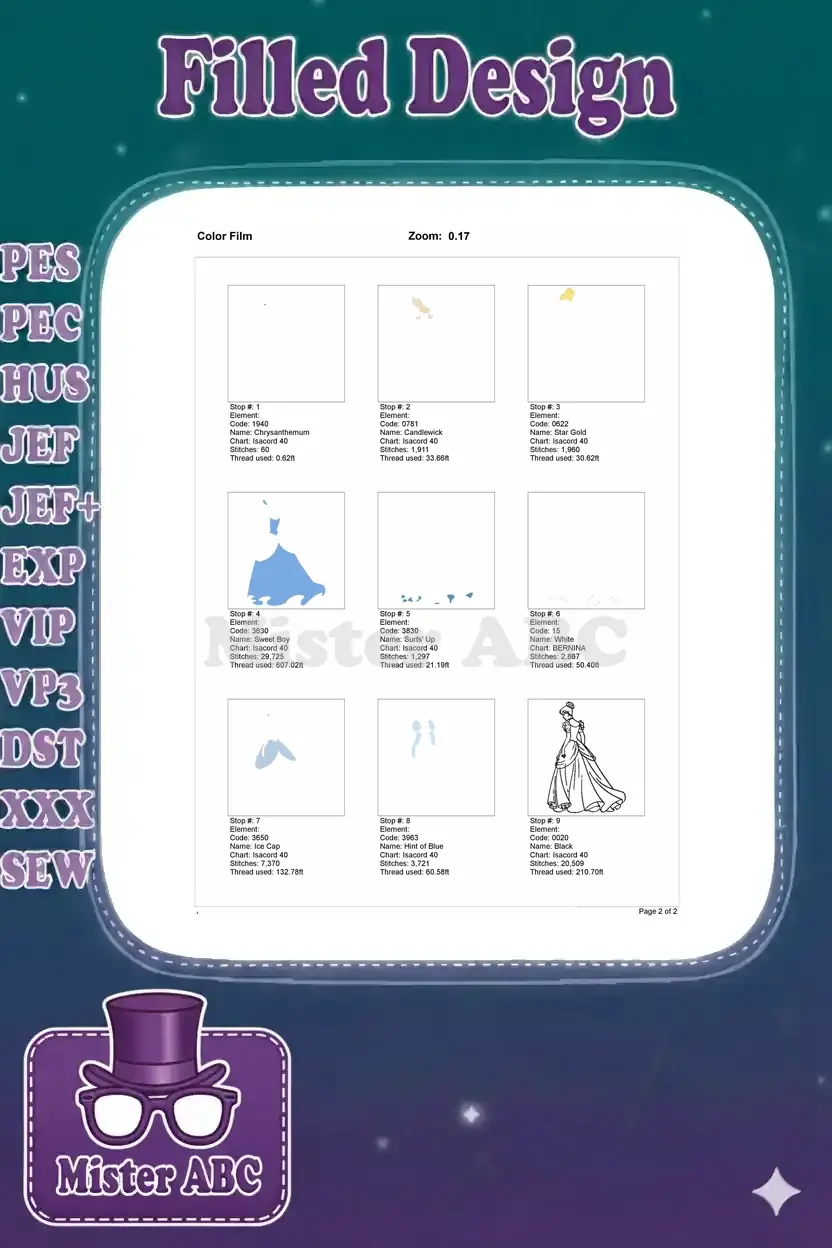 Cinderella Princess in Blue Gown Elegant Embroidery Designs