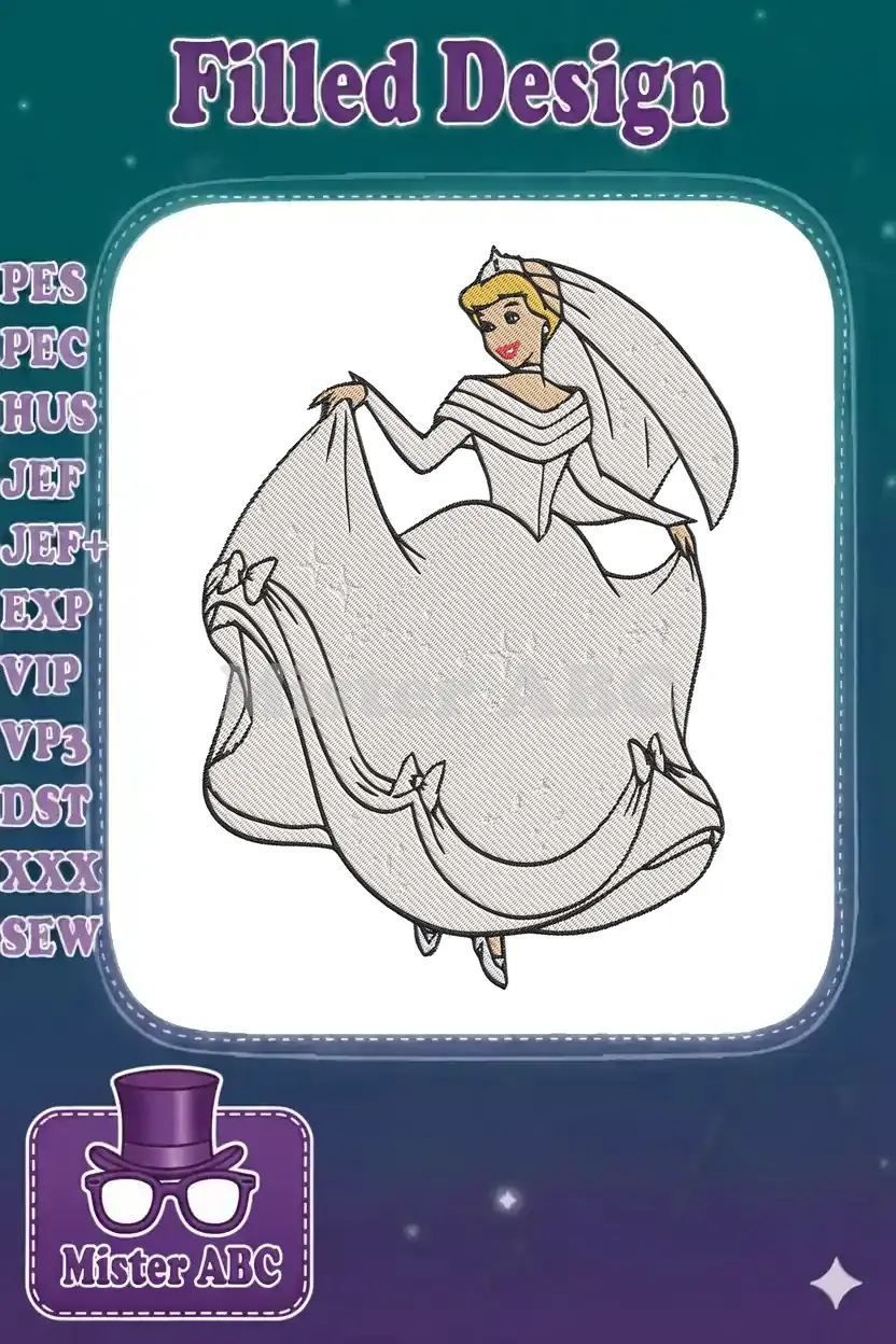 Cinderella Princess Bride Wedding Gown Embroidery Designs
