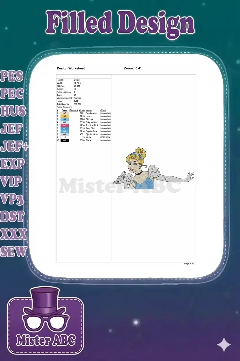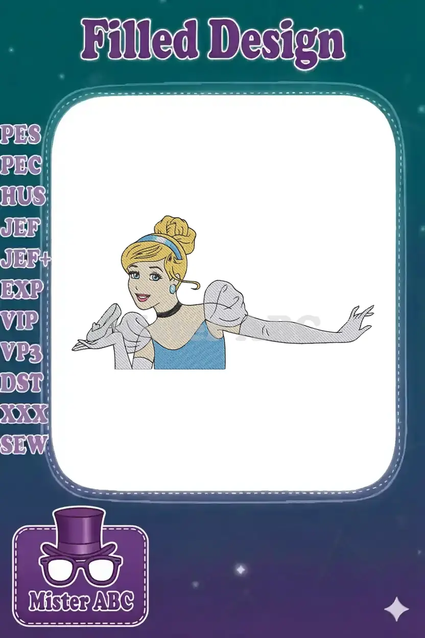 Cinderella Princess Holding Glass Slipper Elegant Embroidery Designs
