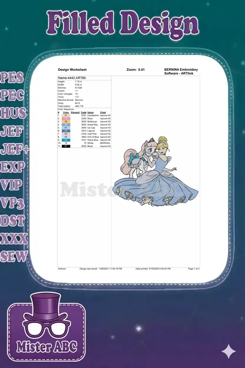 Cinderella Princess with Magical Pink Pony Horse Embroidery Designs