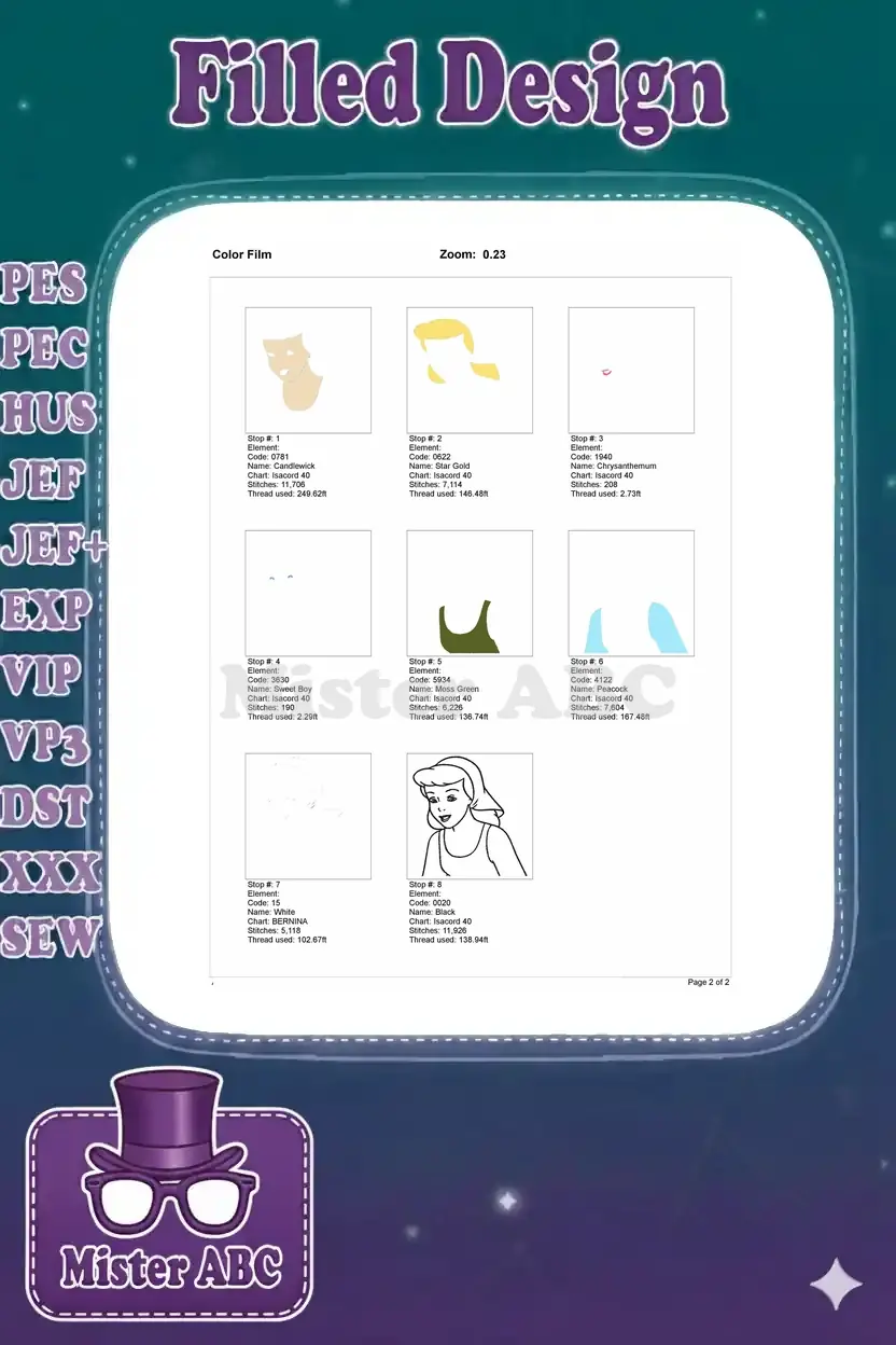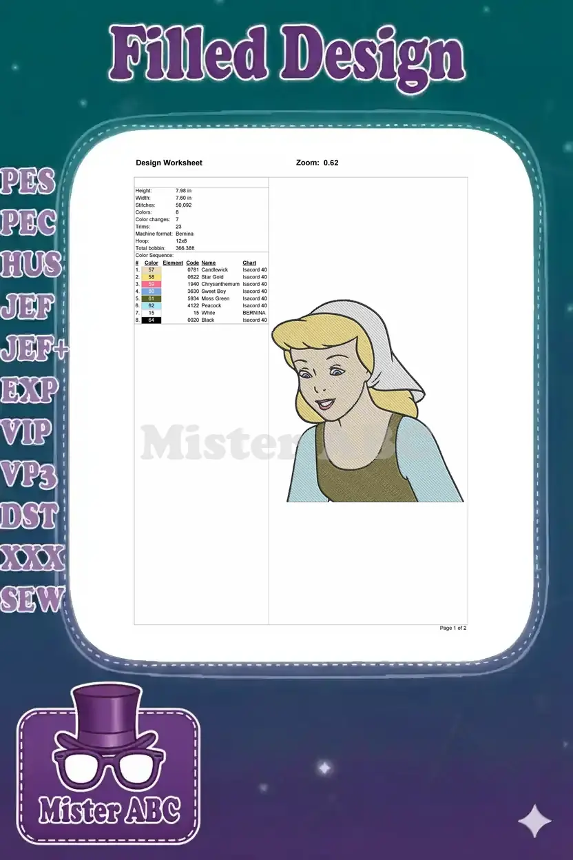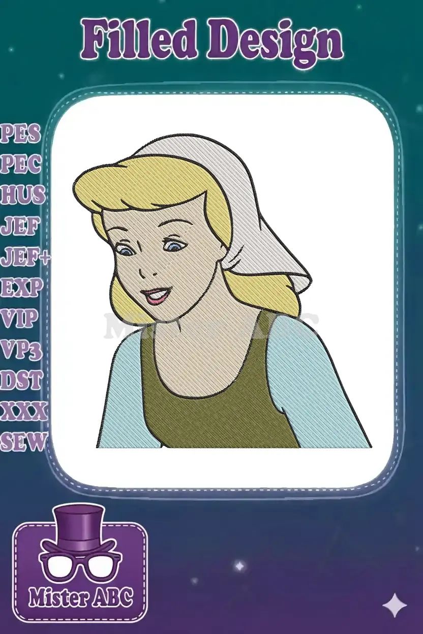 Cinderella Servant Blonde Hair Gentle Expression Embroidery Designs