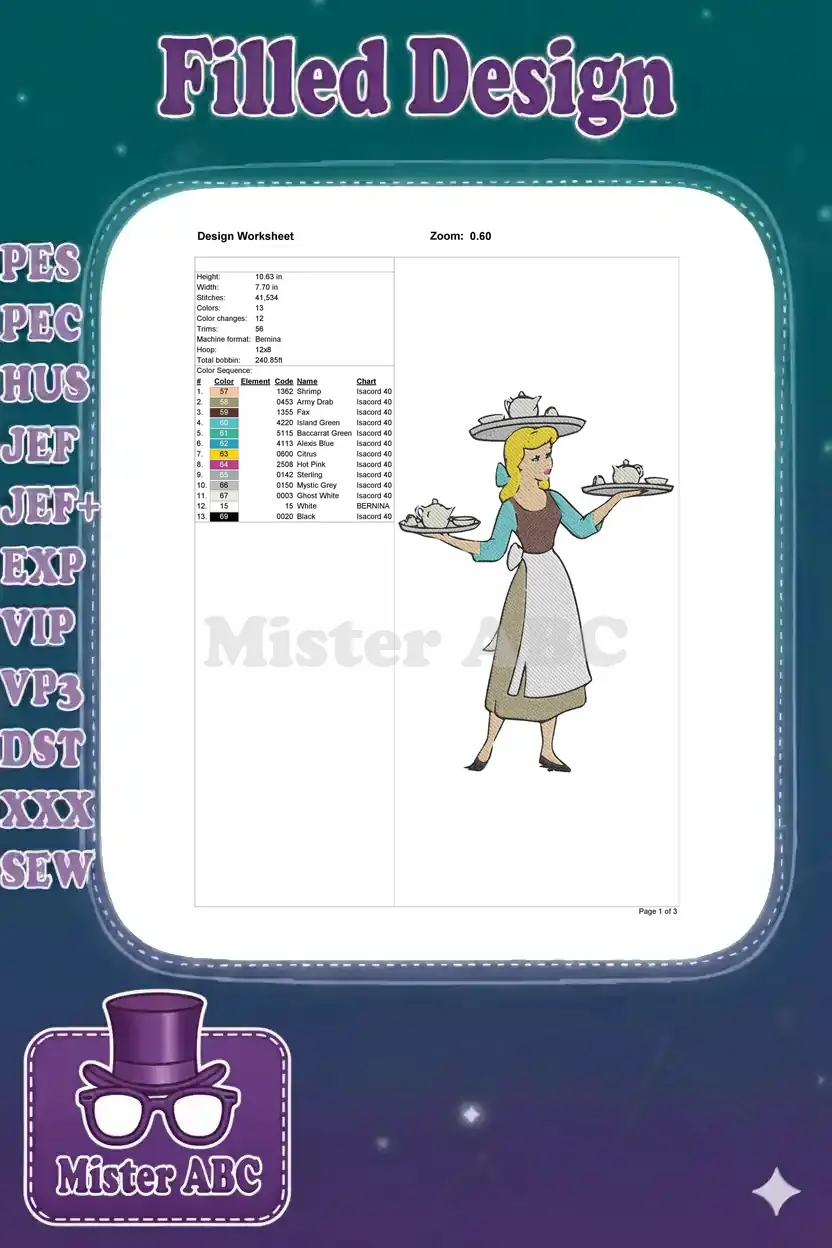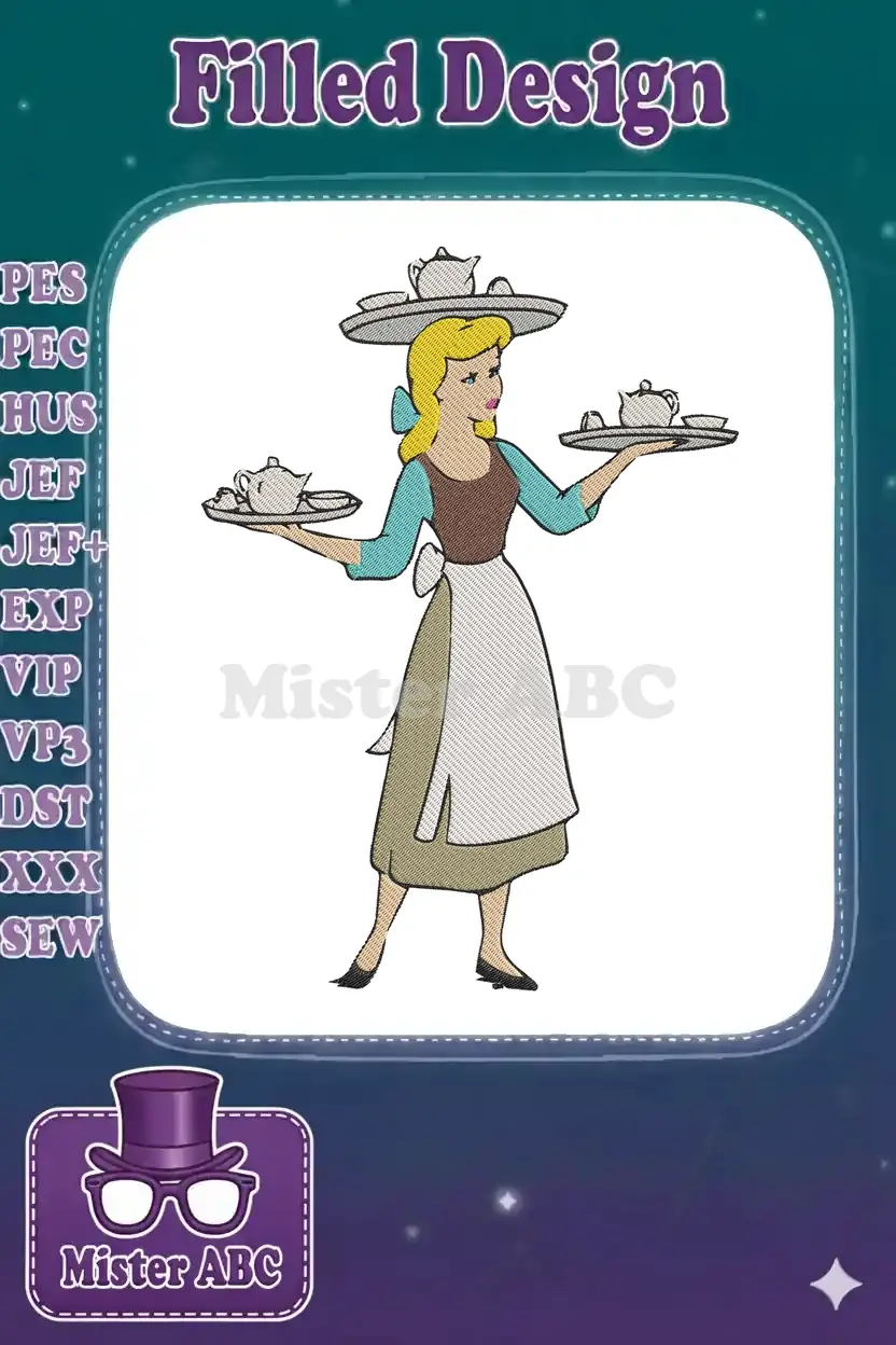 Cinderella servant carrying teapots embroidery designs for fairytales
