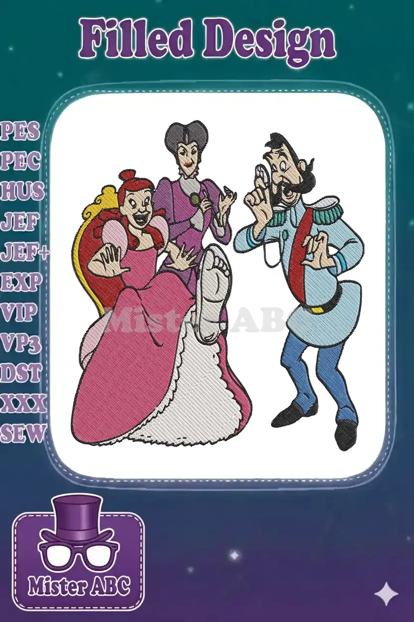 Cinderella Stepmother Stepsister Prince Charming Slipper Try Embroidery Designs