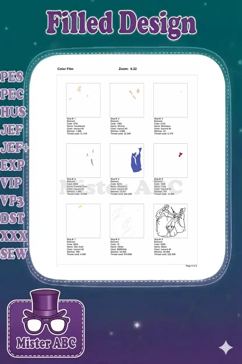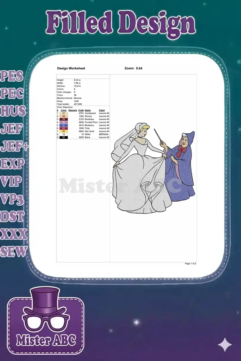Cinderella Wedding Dress and Fairy Godmother Magical Embroidery Designs – Instant Download
