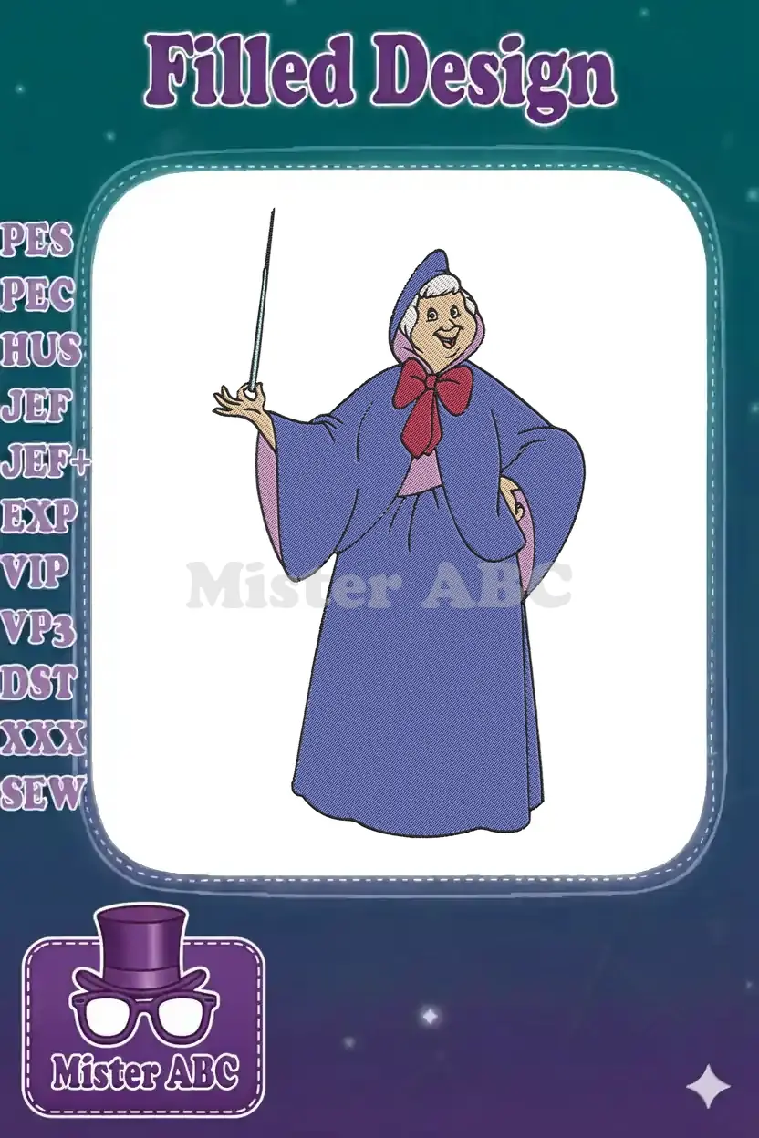 Cinderella’s Fairy Godmother with Magic Wand Embroidery Designs